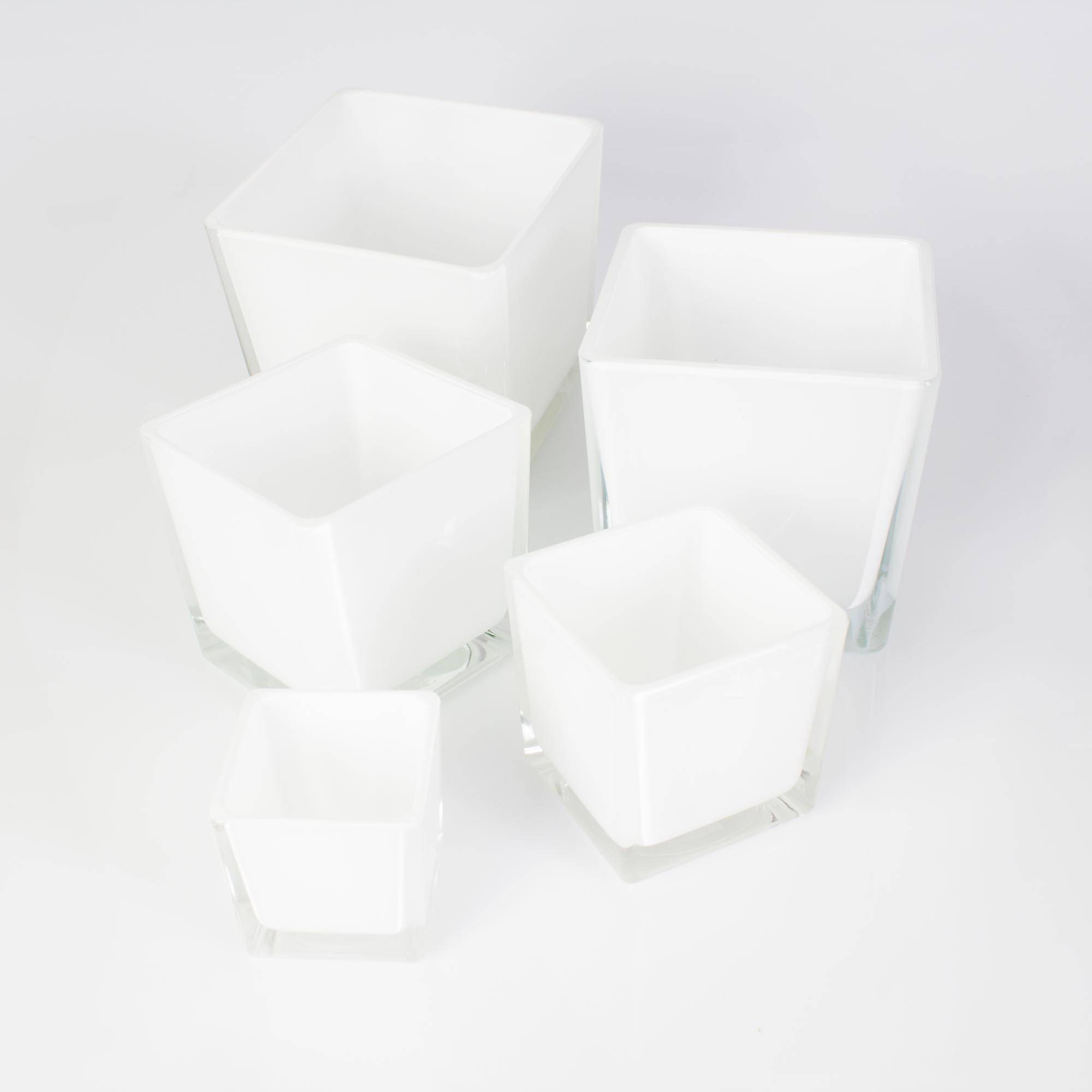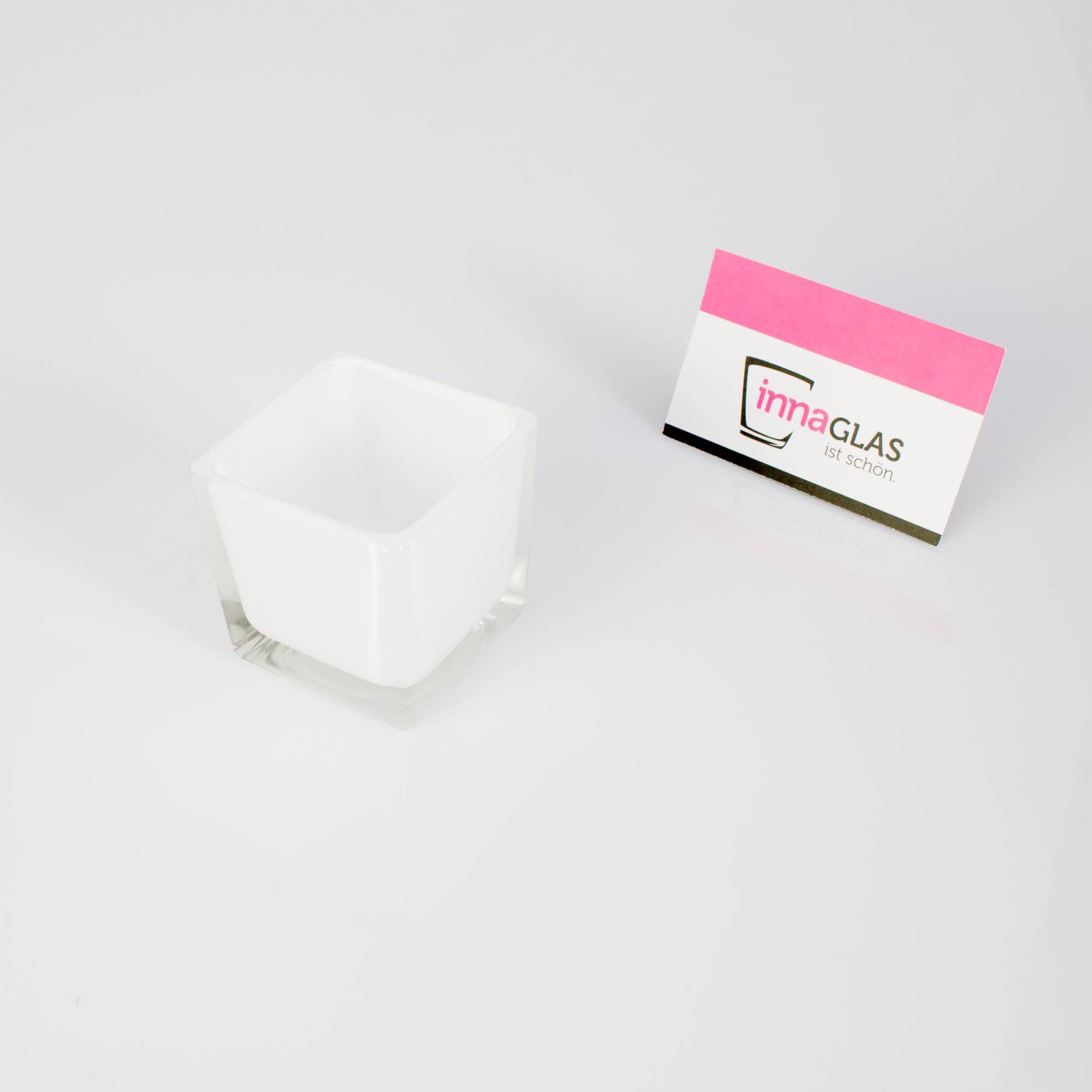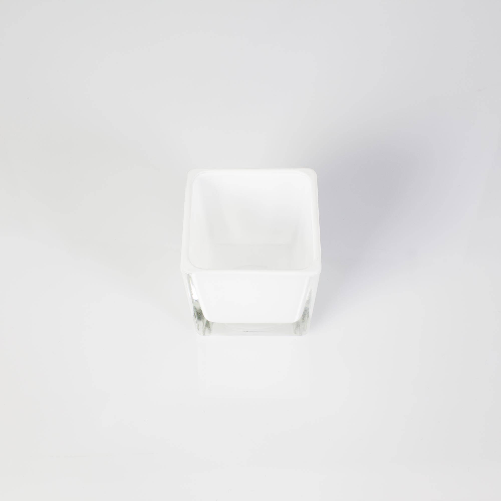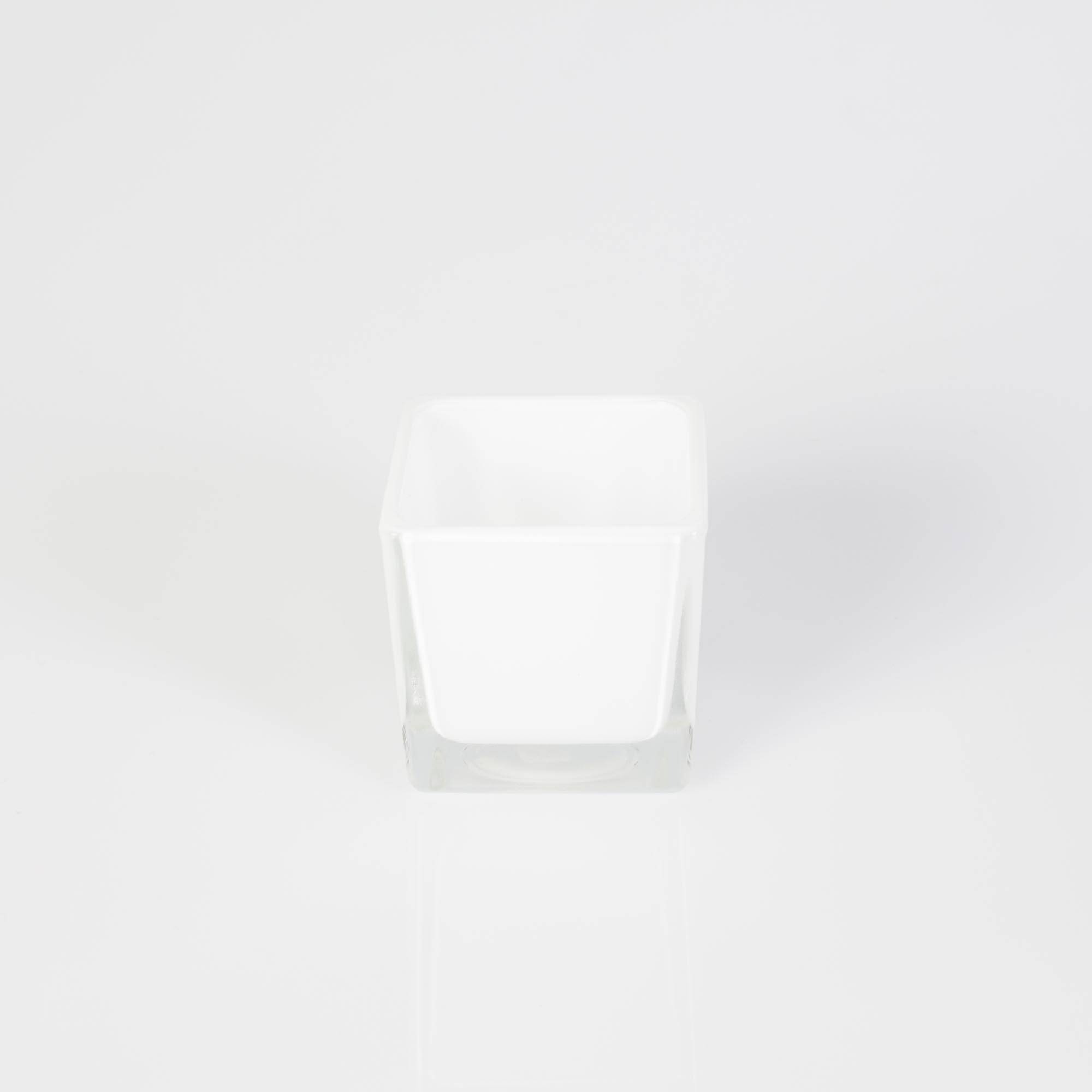 Pequeño portavelas de cristal KIM EARTH, blanco, 6x6x6cm