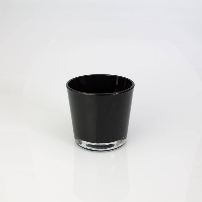 Pequeño vaso de cristal / Portavelas ALENA, negro, 10,5cm, Ø11,5cm