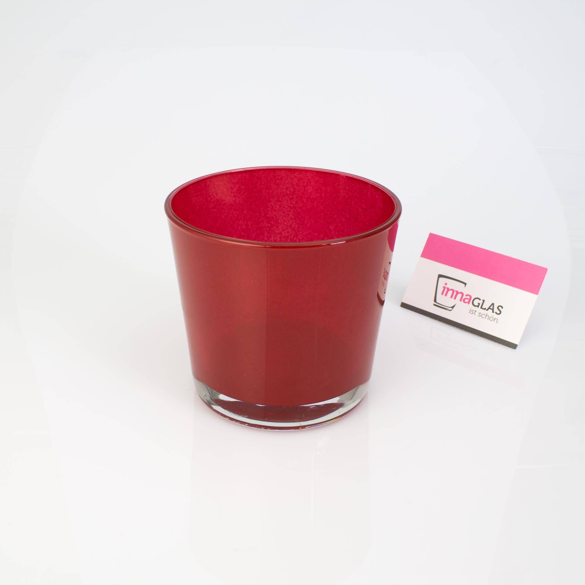 Pequeño vaso de cristal ALENA de INNA Glas en color rojo. El portavelas con una altura de 10,5 cm y un diámetro de 11,5 cm es ideal tanto como gran portavelas como pequeño macetero para plantas naturales y artificiales.
