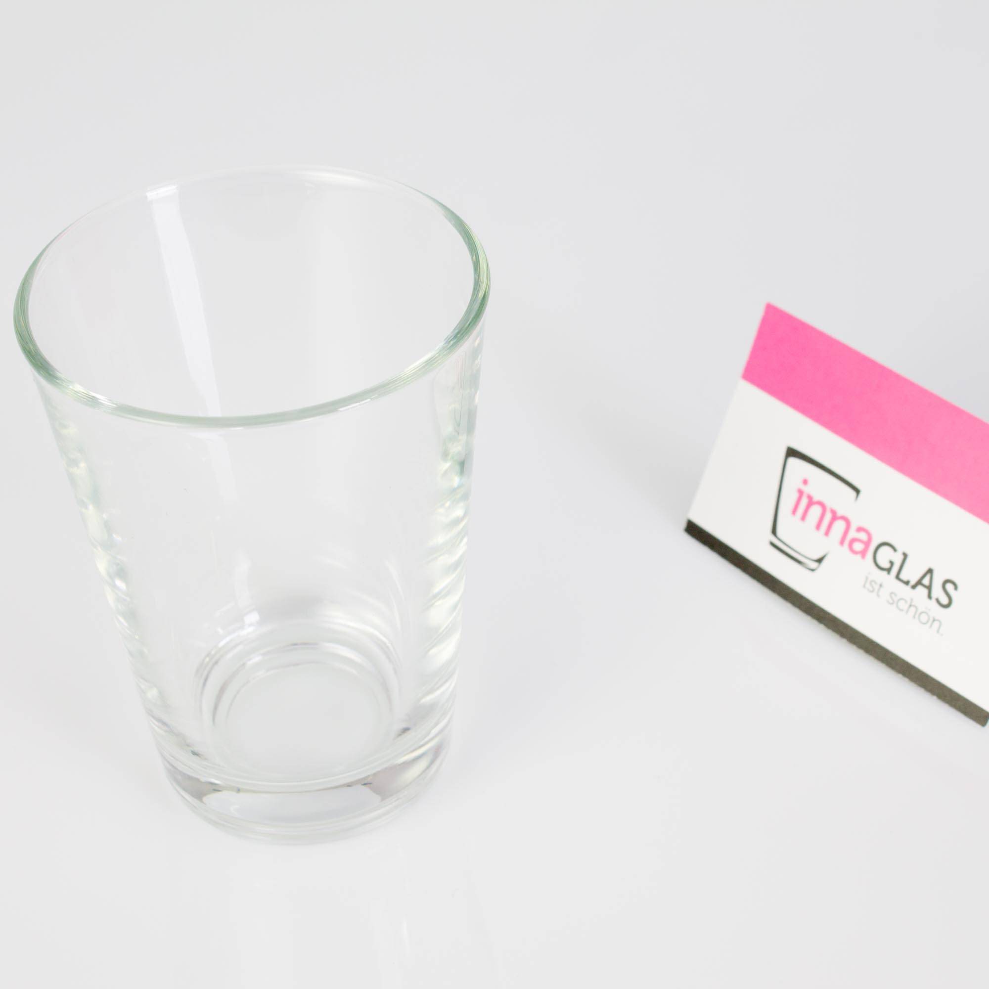 Pequeño portavelas ALEX de cristal de 2 mm de INNA Glas. El vaso tiene una altura de 11 cm y posee una capacidad para 200 ml de agua.