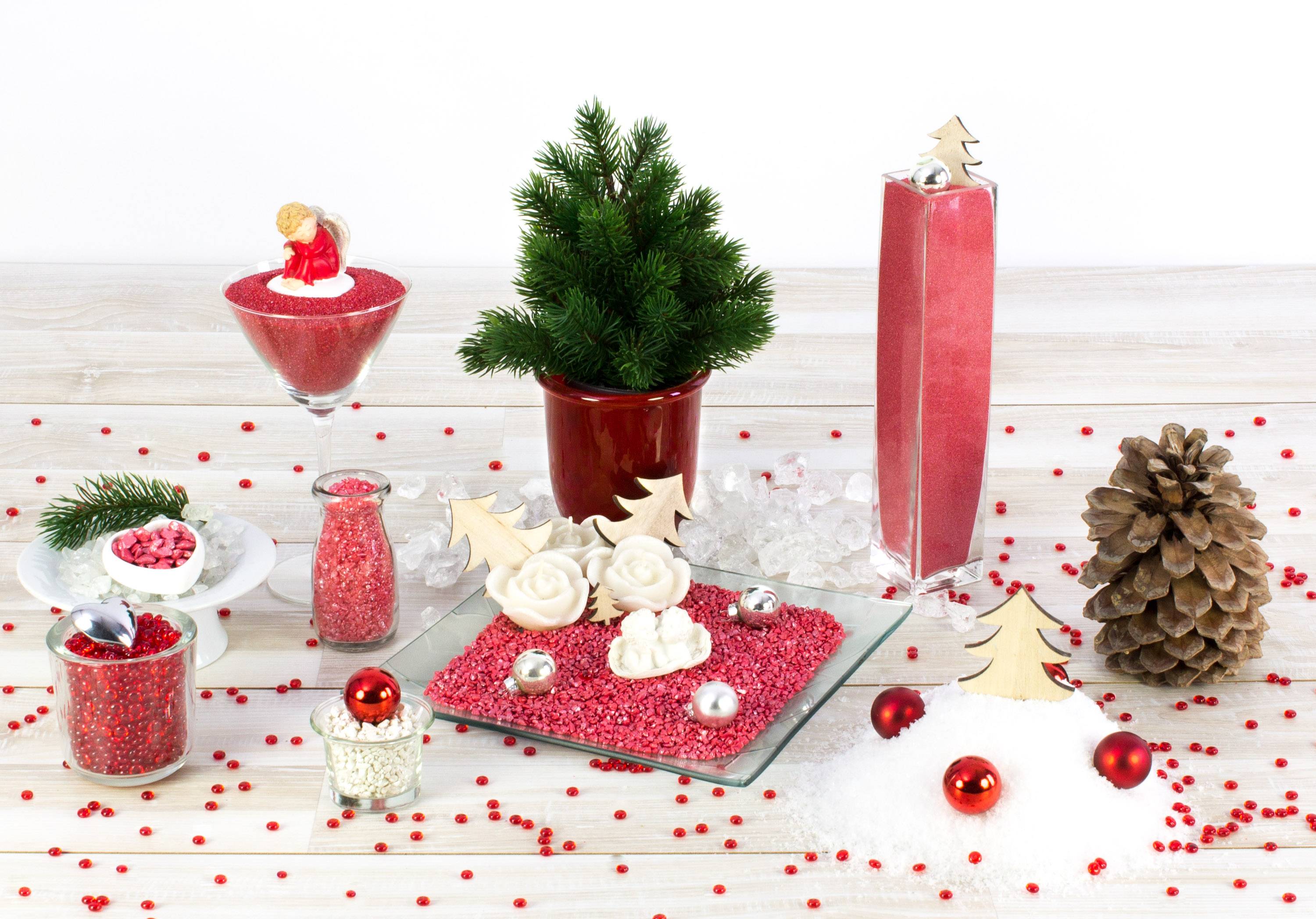 Perlas granuladas decorativas SAMMY, flotantes, color rojo brillante, 0,2-0,5mm, 605ml bote, Producido en Alemania