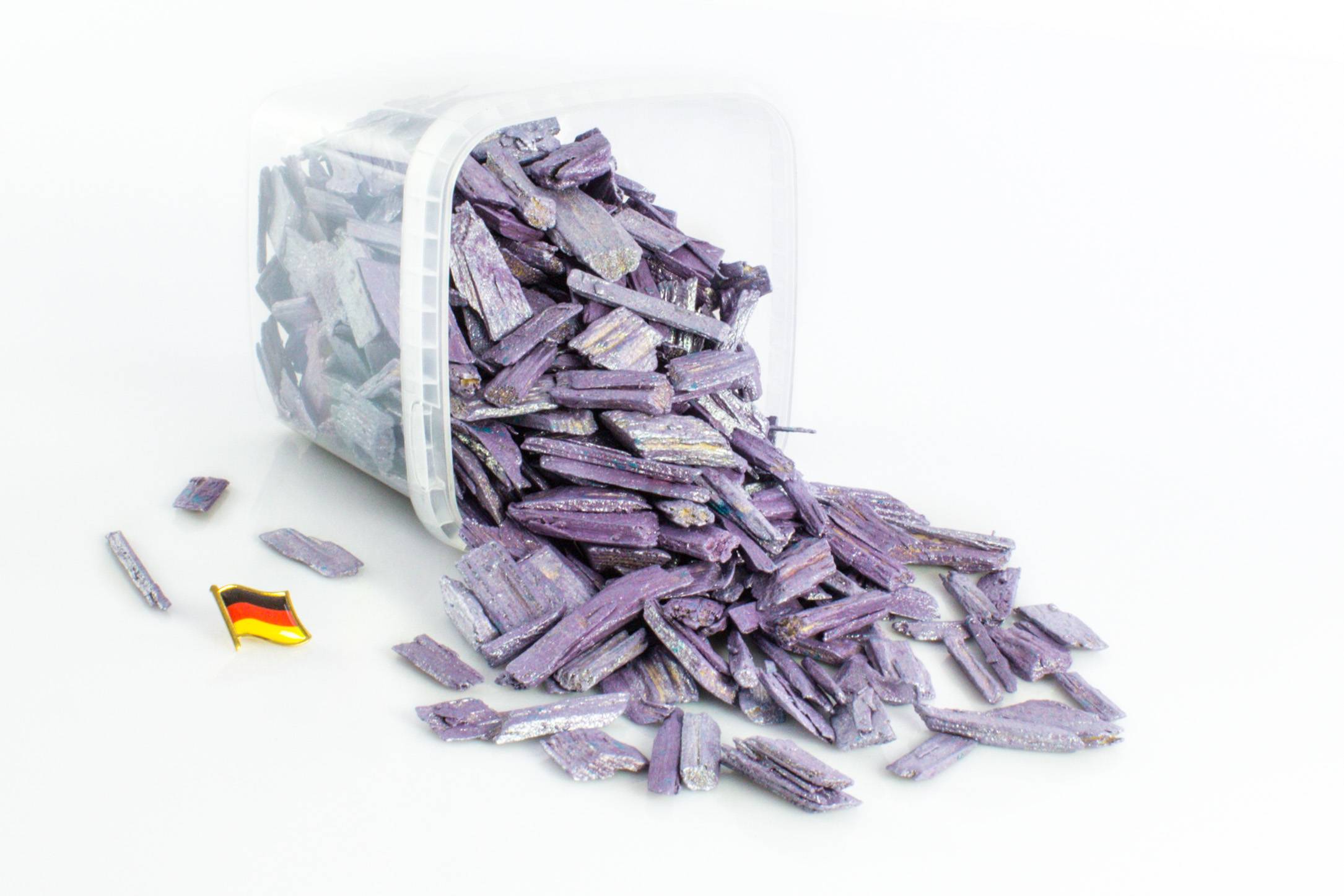 Piezas de madera decorativas HEDWIG, color lavanda brillante, 2-10cm, 1,1l cubo, Producido en Alemania