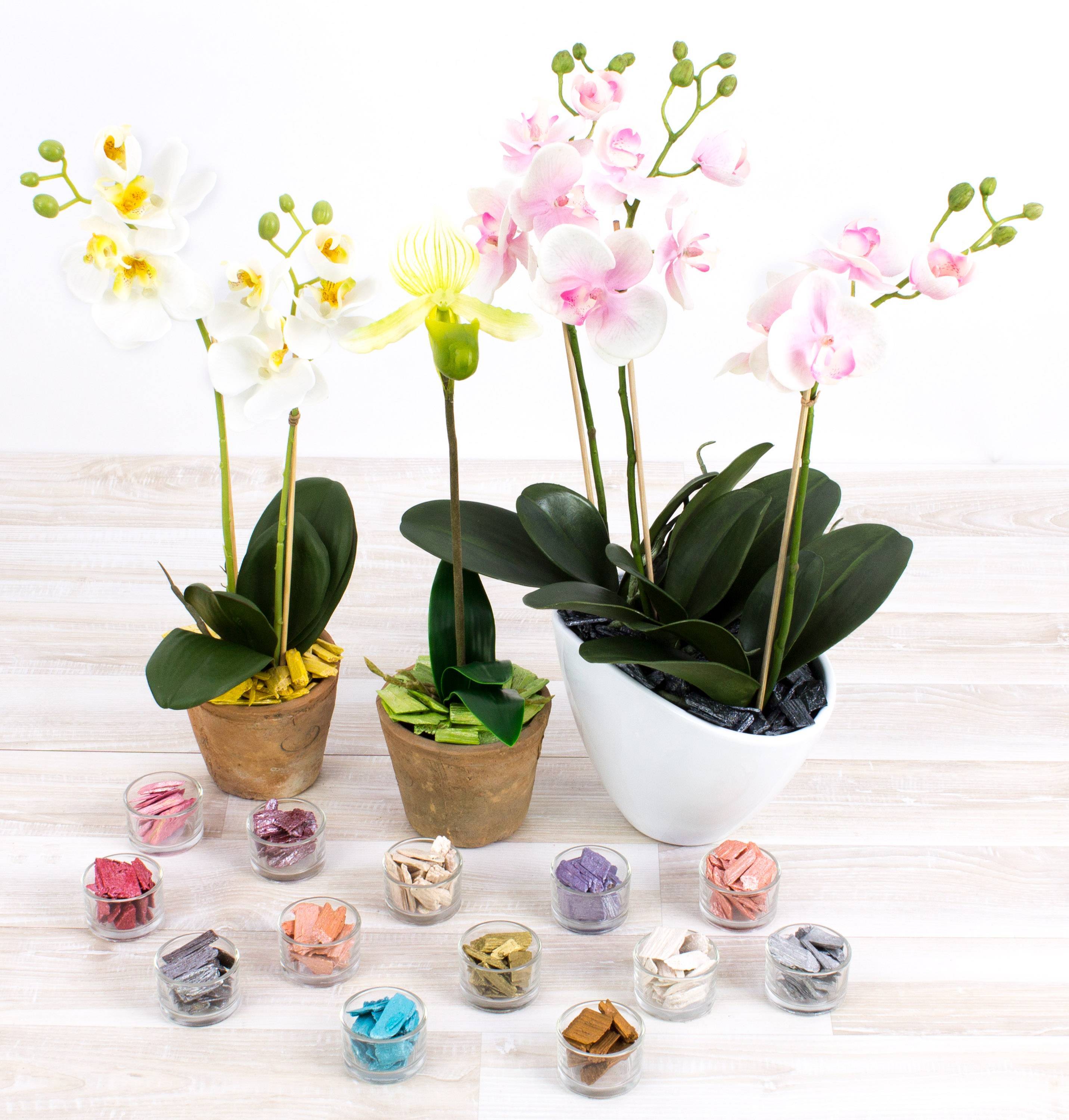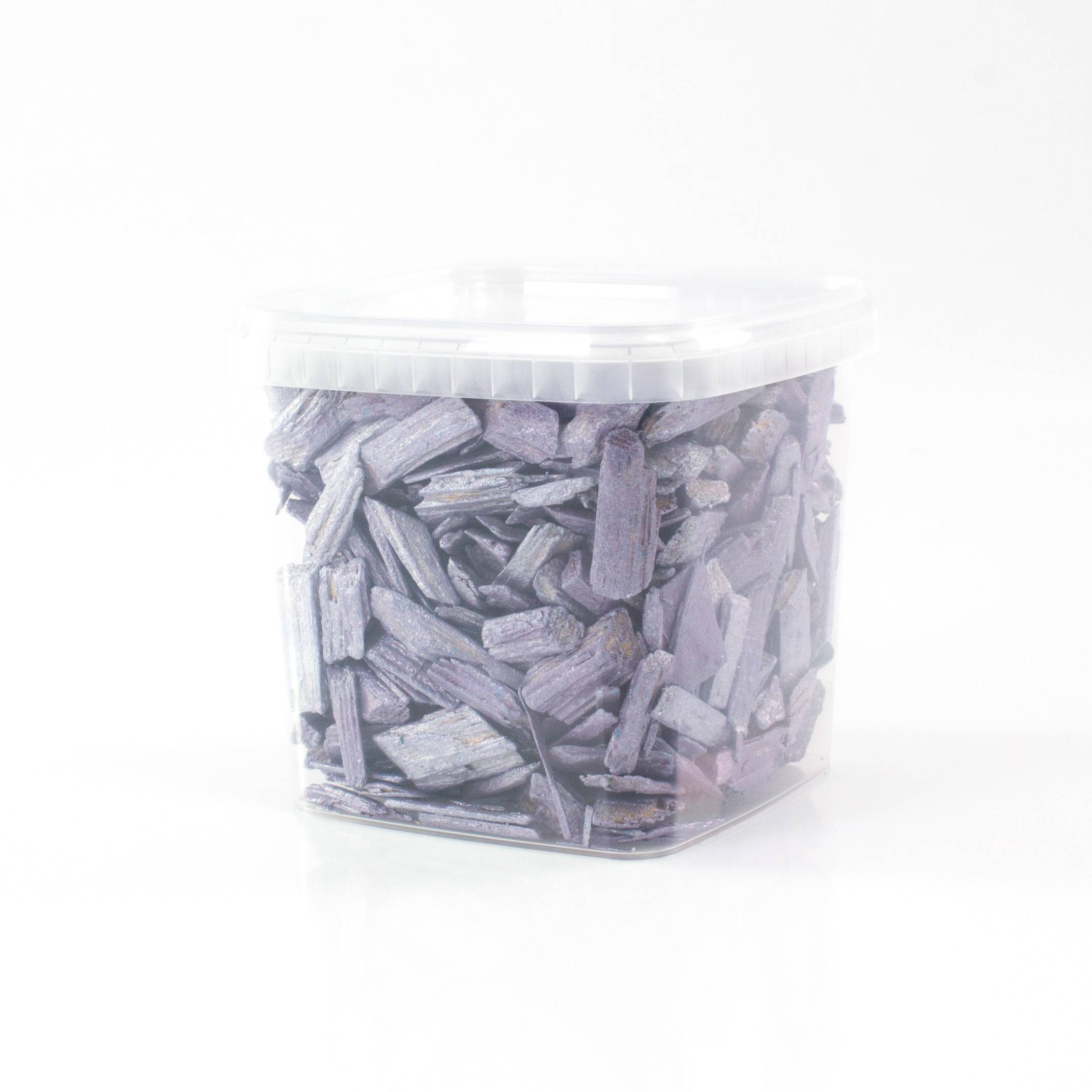 Trozos de madera brillantes HEDWIG en color lavanda brillante y en una práctica caja de plástico de 1,1 L. Perfecto para la decoración de macetas, floreros, jardines y mucho más.