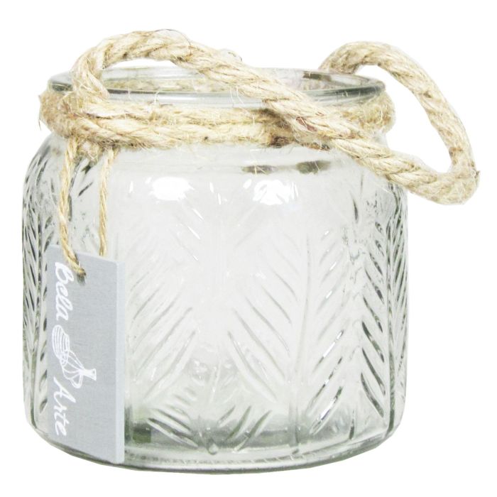 Portavelas FEENA de cristal, relieve de hoja, asa, transparente, 10,5cm, Ø11cm