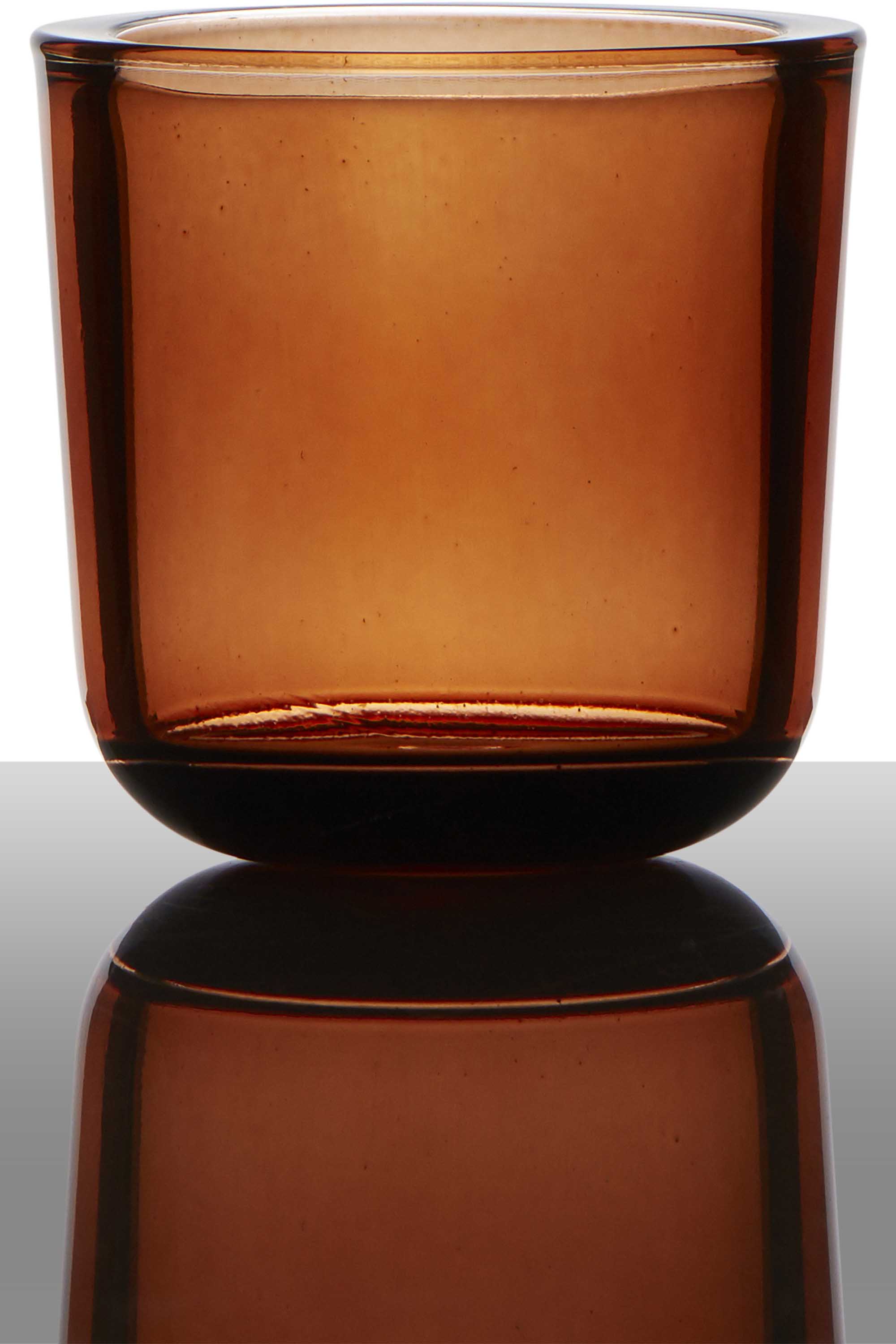 El candelero/portavelas de cristal NICK de color naranja transparente con medidas 7,5cm, Ø7,5cm de INNA Glas ofrece espacio para una vela de té y se adapta perfectamente a sus ideas de decoración