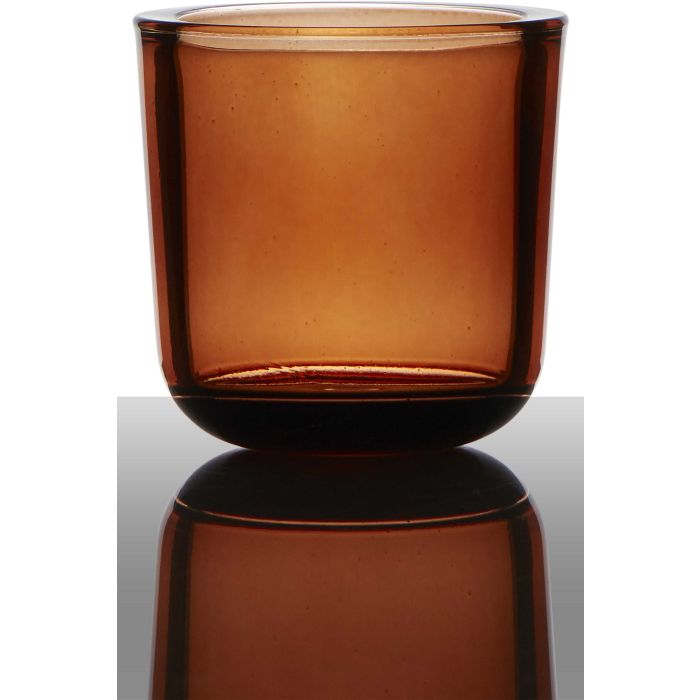 Portavelas NICK, cilíndrico/redondo, naranja transparente, 7,5cm, Ø7,5cm