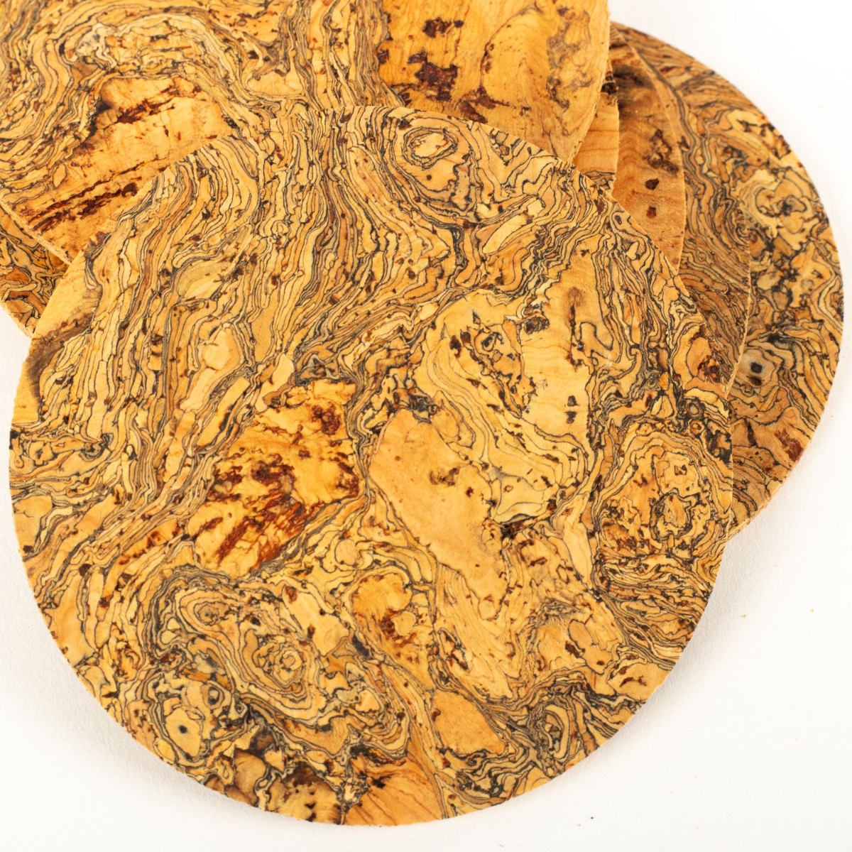 - En color natural, elaborado a partir de corcho prensado. Para formar el corcho prensado se añade un aglutinante a los gránulos de corcho clasificados. El aglutinante, un adhesivo de calidad alimentaria, actúa como un agente natural, asegurando que las partículas de corcho se adhieran entre sí manteniendo sus propiedades únicas.