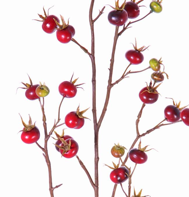 Rama de rosa silvestre de plástico GERDA con frutos, roja, 110cm