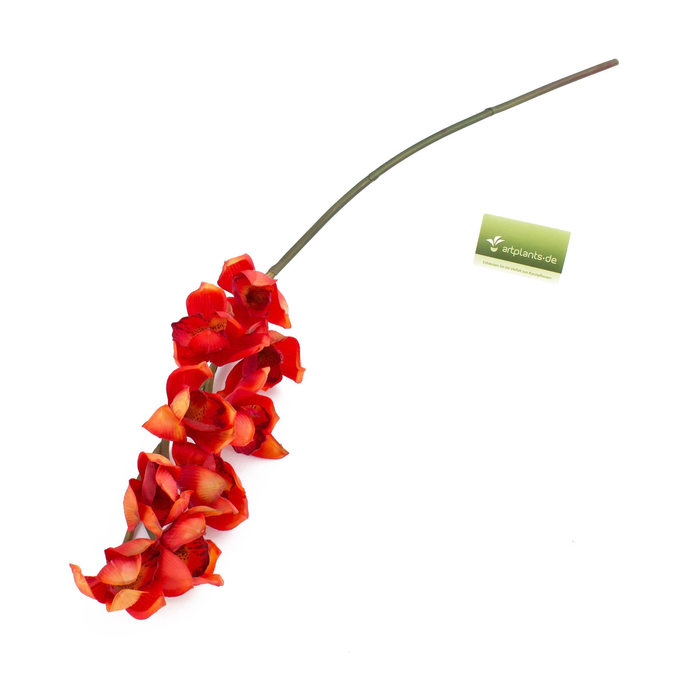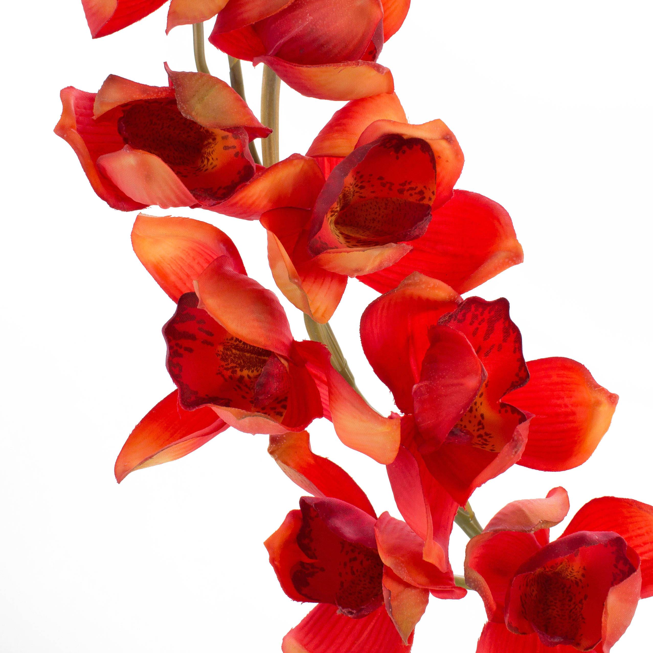 Rama falsa de orquídea Cymbidium OKSANA, rojo-naranja, 80cm