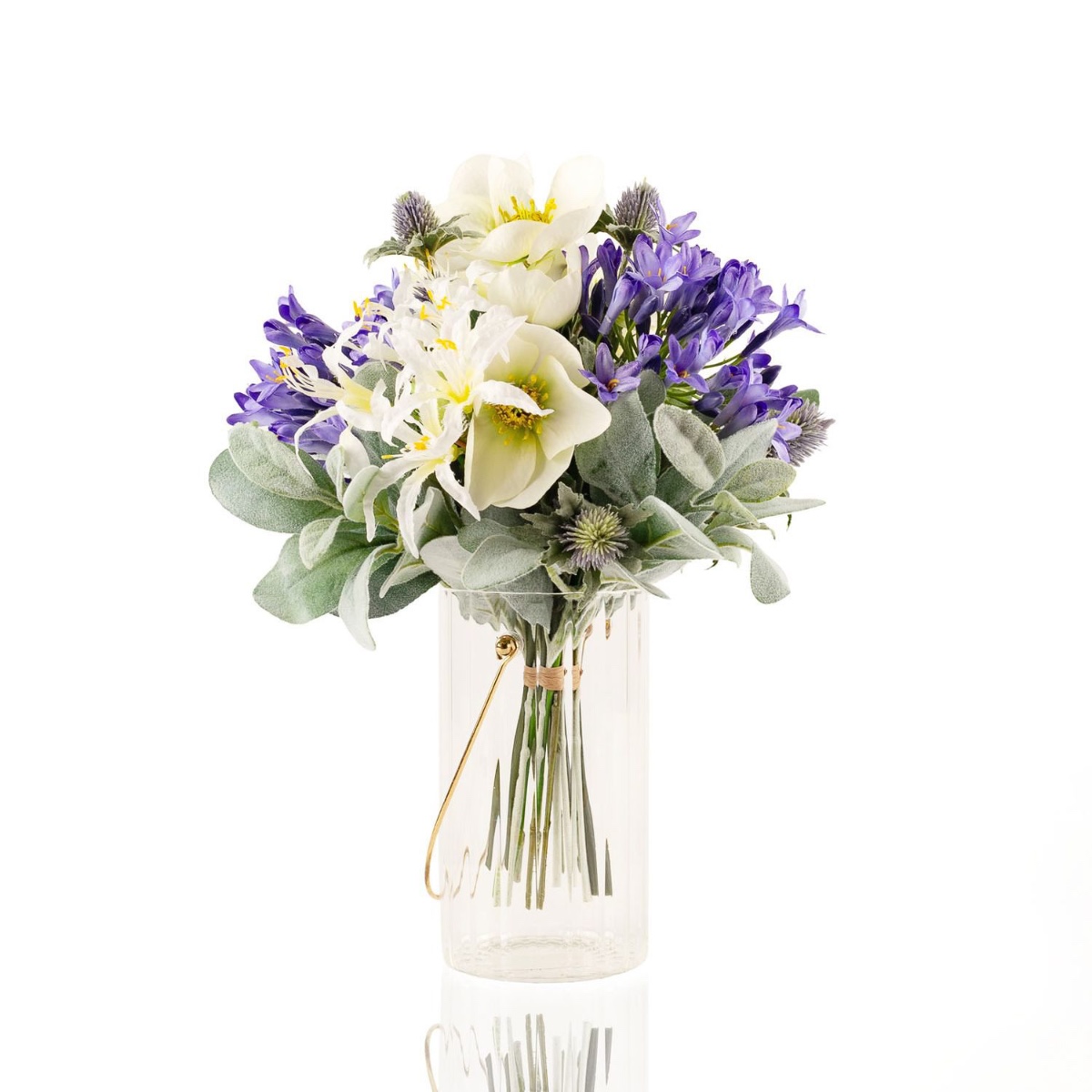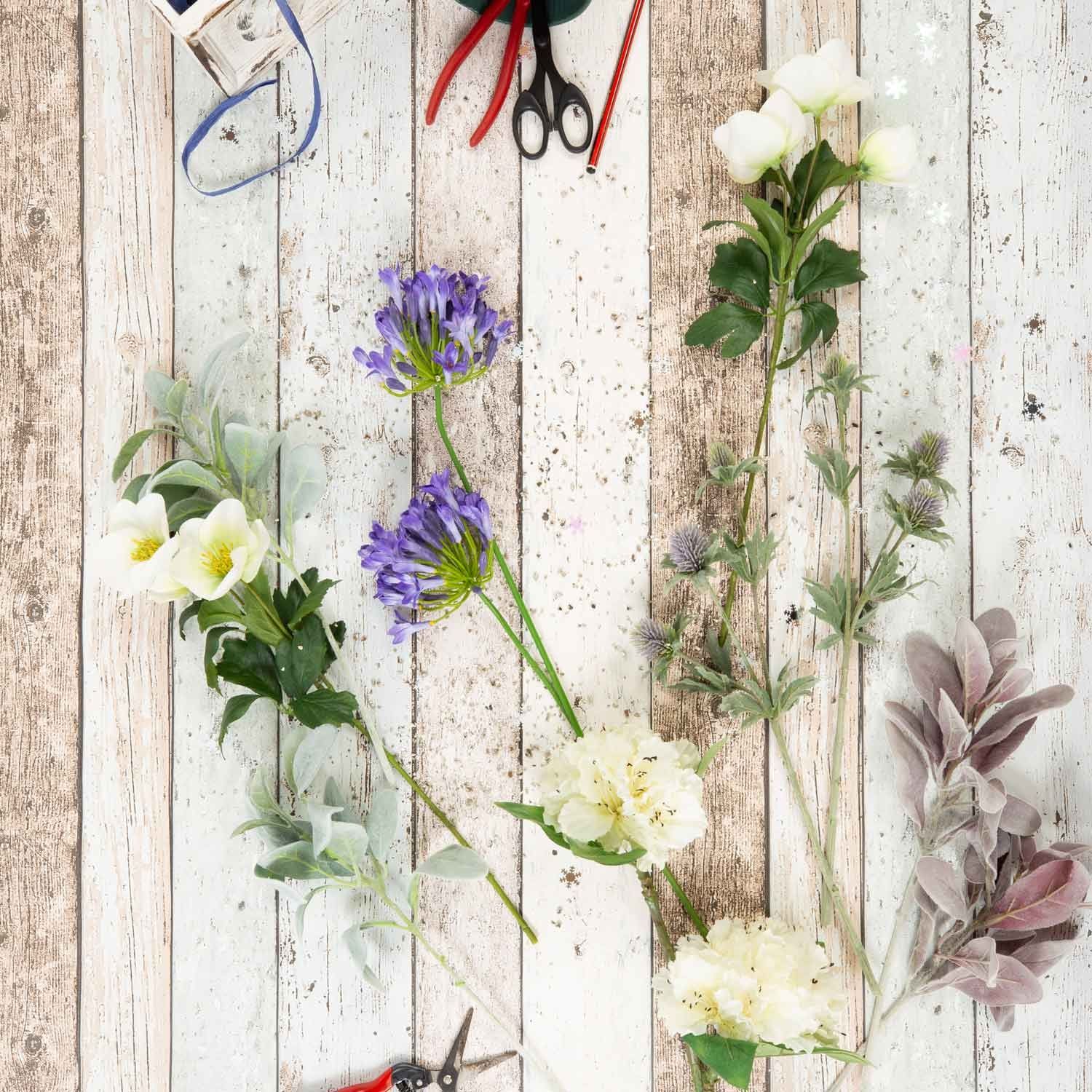 Ramillete de plástico de invierno ALANA, blanco-morado, 35cm, Ø30cm