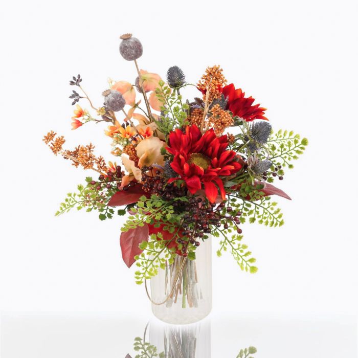 Ramillete de plástico de otoño HELENA girasol, rojo, 40cm, Ø35cm