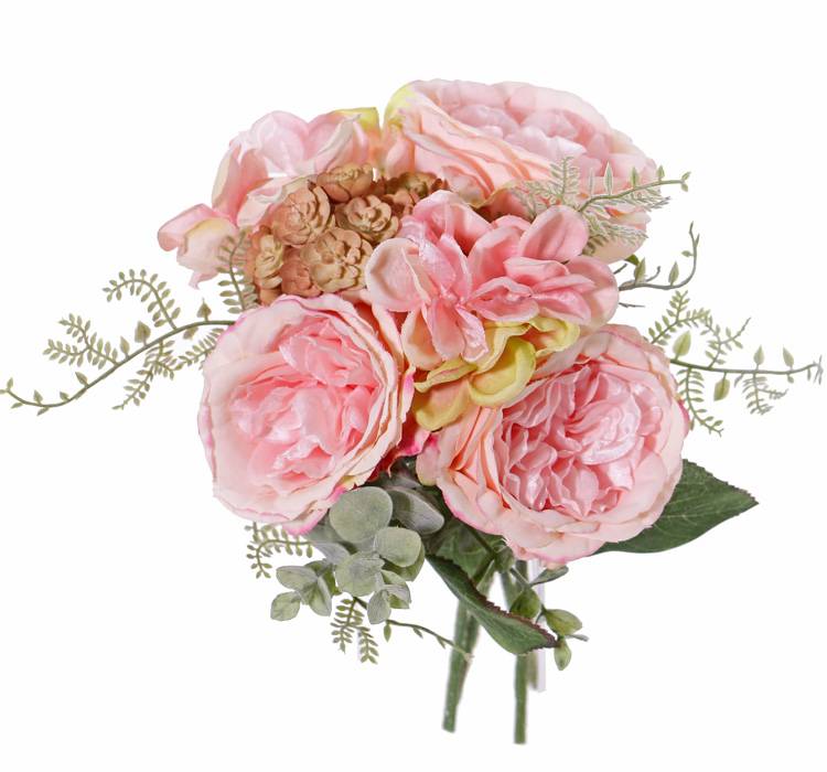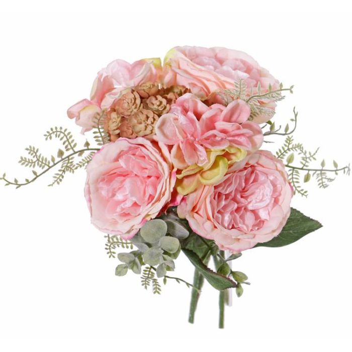 Ramillete de rosas artificiales SIERRA con hydrangea y echeveria, rosa, 25cm, Ø25cm