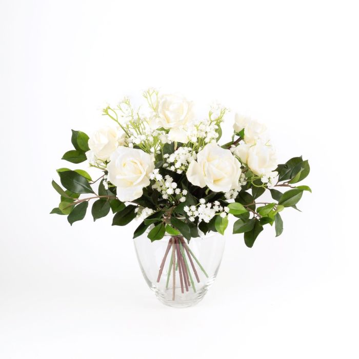 Ramillete de rosas de plástico AMELIE, gipsófila, blanco, 45cm, Ø40cm