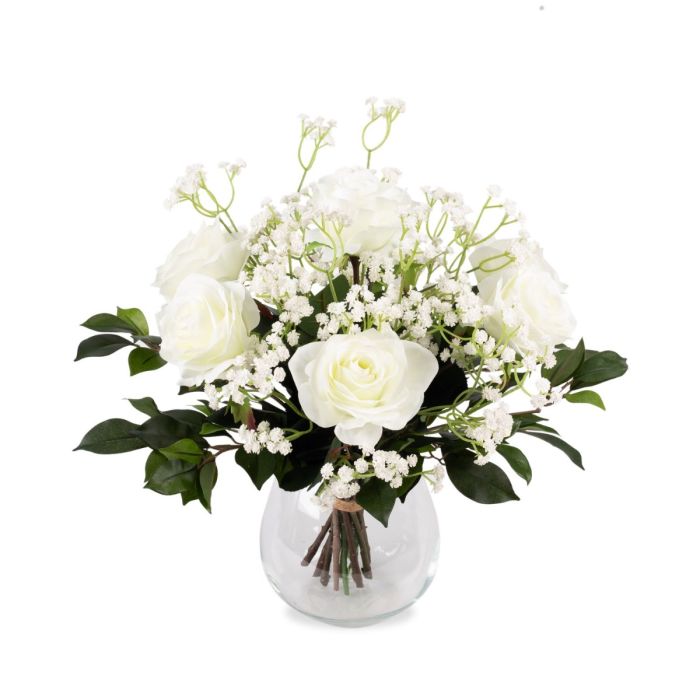Ramillete de rosas de plástico ELLI, gipsófila, rosa-crema, 35cm, Ø30cm