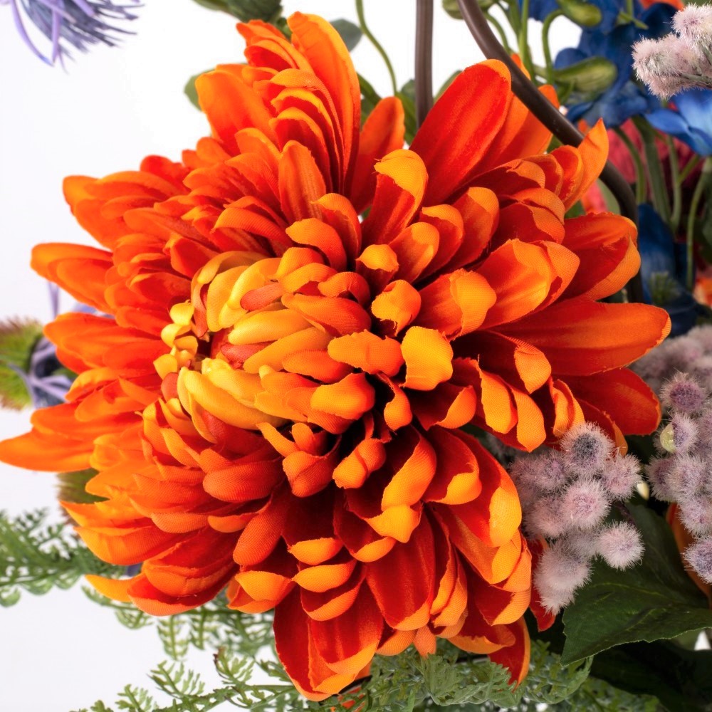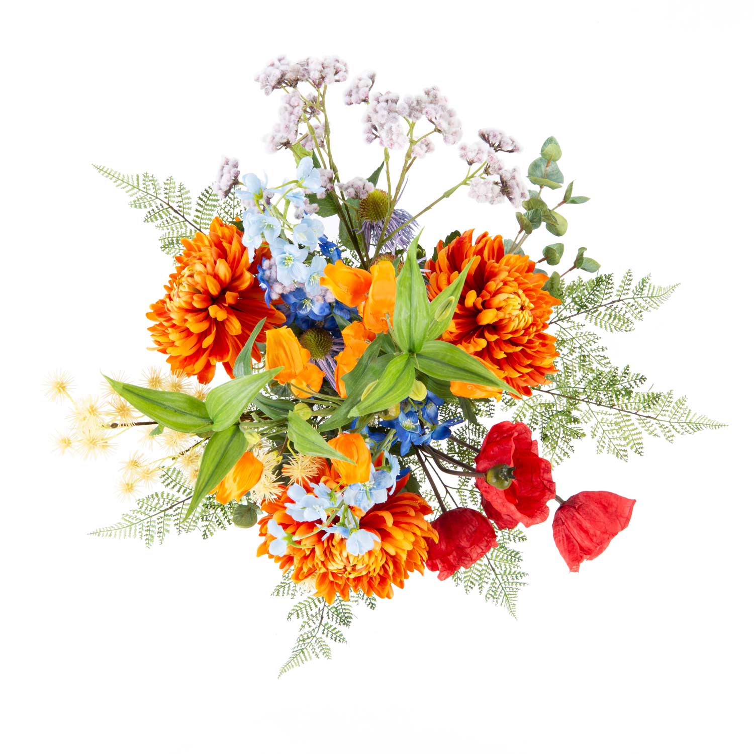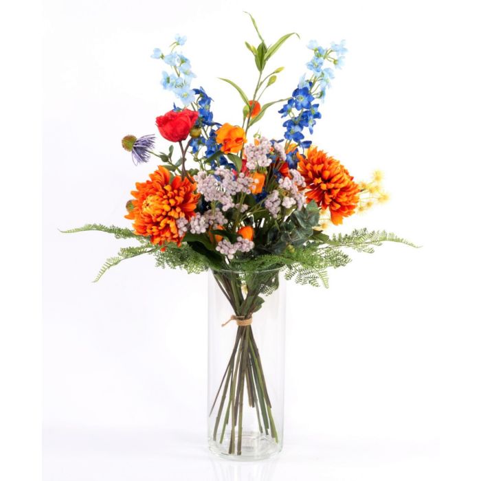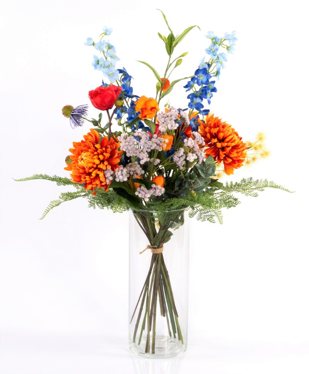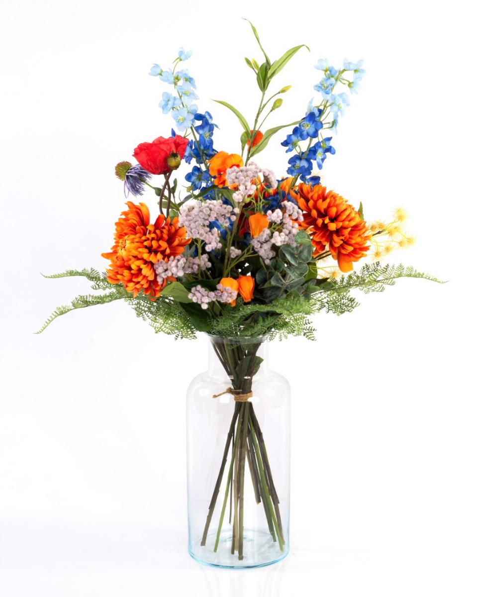 Ramo de flores artificiales LOLANA, delphinium, naranja-azul, 70cm, Ø50cm
