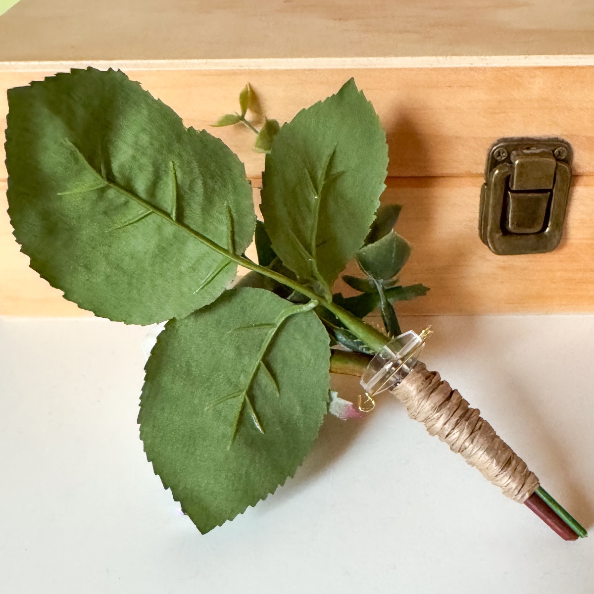 ¡Flores que conservan el amor para siempre! Para Andy y Janine hemos creado un ramo para su gran día. Las rosas de color crema irradian una belleza clásica, son especialmente realistas y casi parecen flores auténticas. La gypsophila aporta suaves toques de color azul claro, mientras que el eucalipto resalta la frescura natural. A juego, hemos creado un elegante alfiler para el novio que completa armoniosamente el look. Ya sea para las fotos, para el camino hacia el altar o como recuerdo para toda la vida, este ramo de novia captura con cariño los momentos más bonitos. ¡Compra el look!
