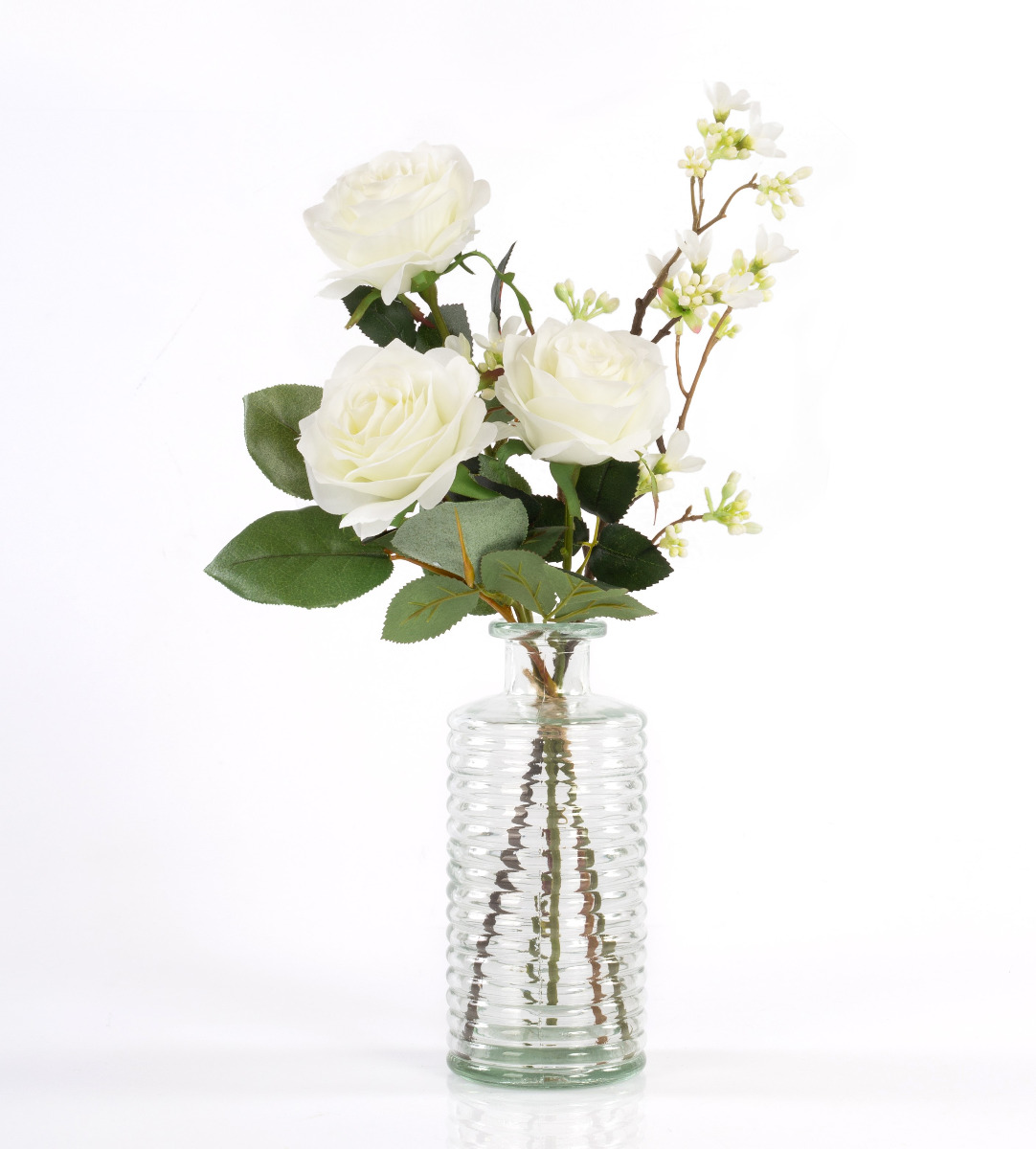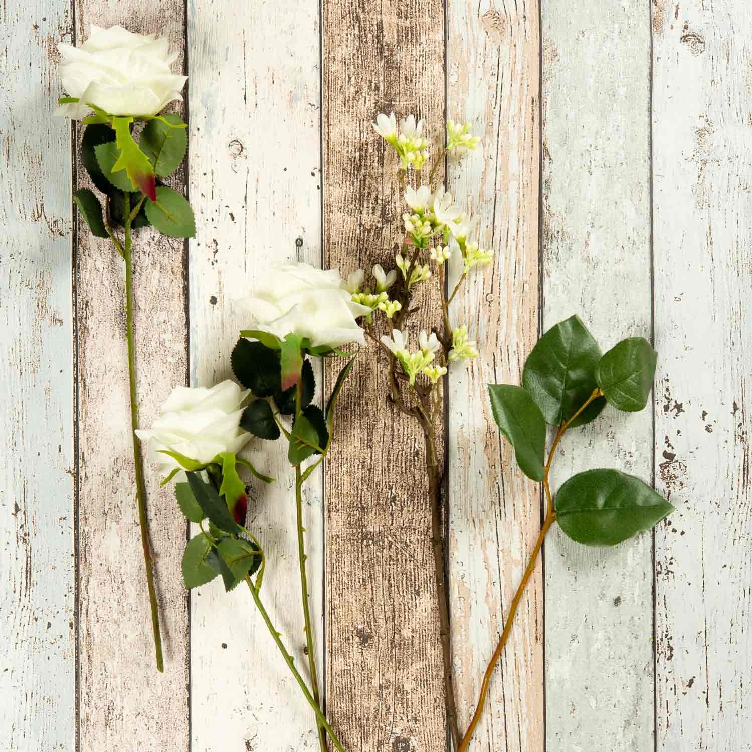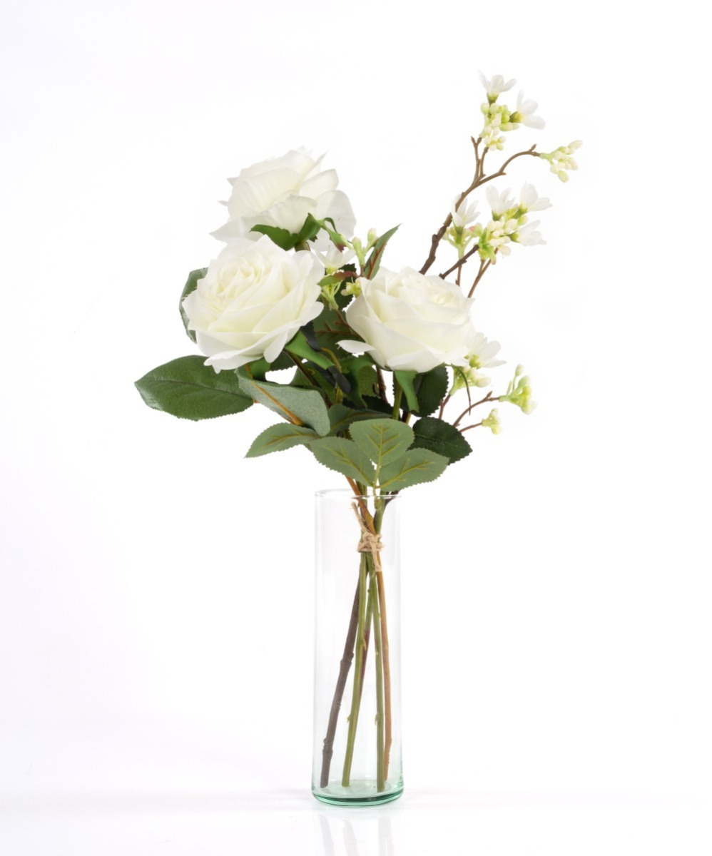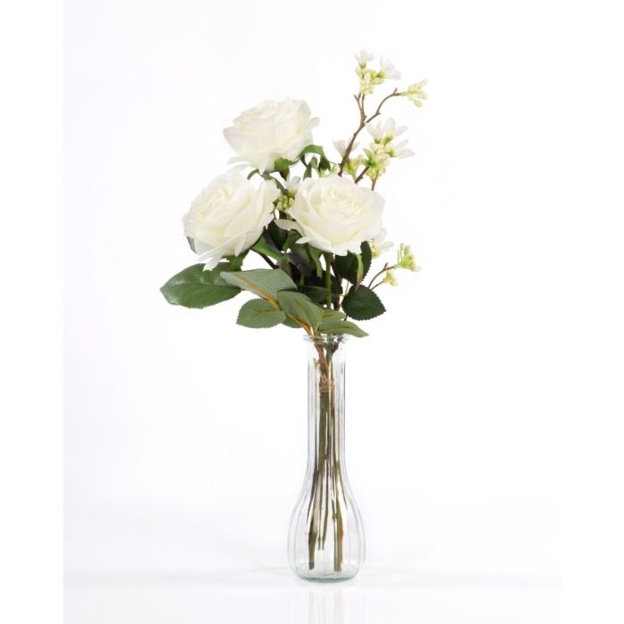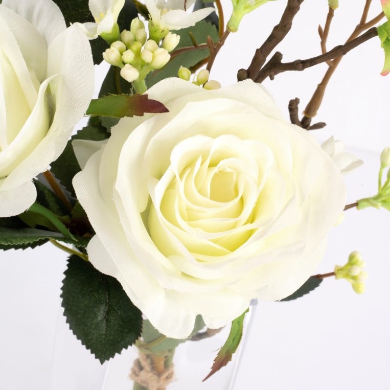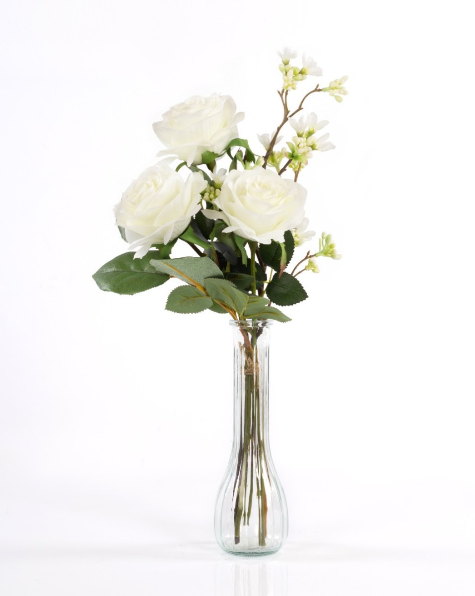 Ramo de rosas de plástico SIMONY con accesorios, crema, 45cm, Ø20cm