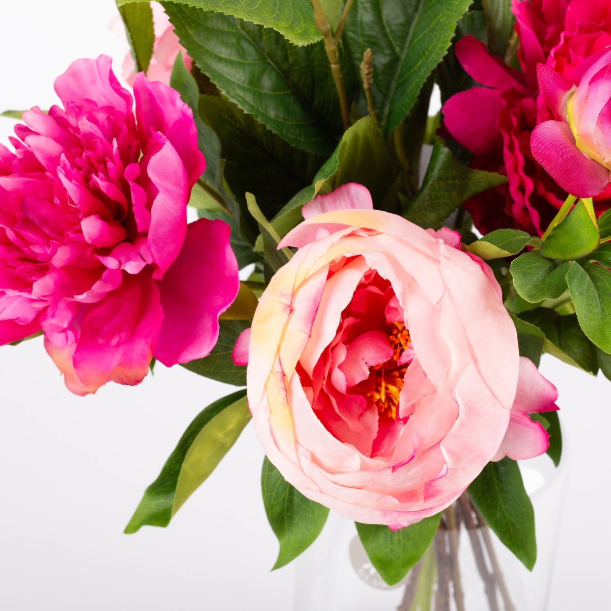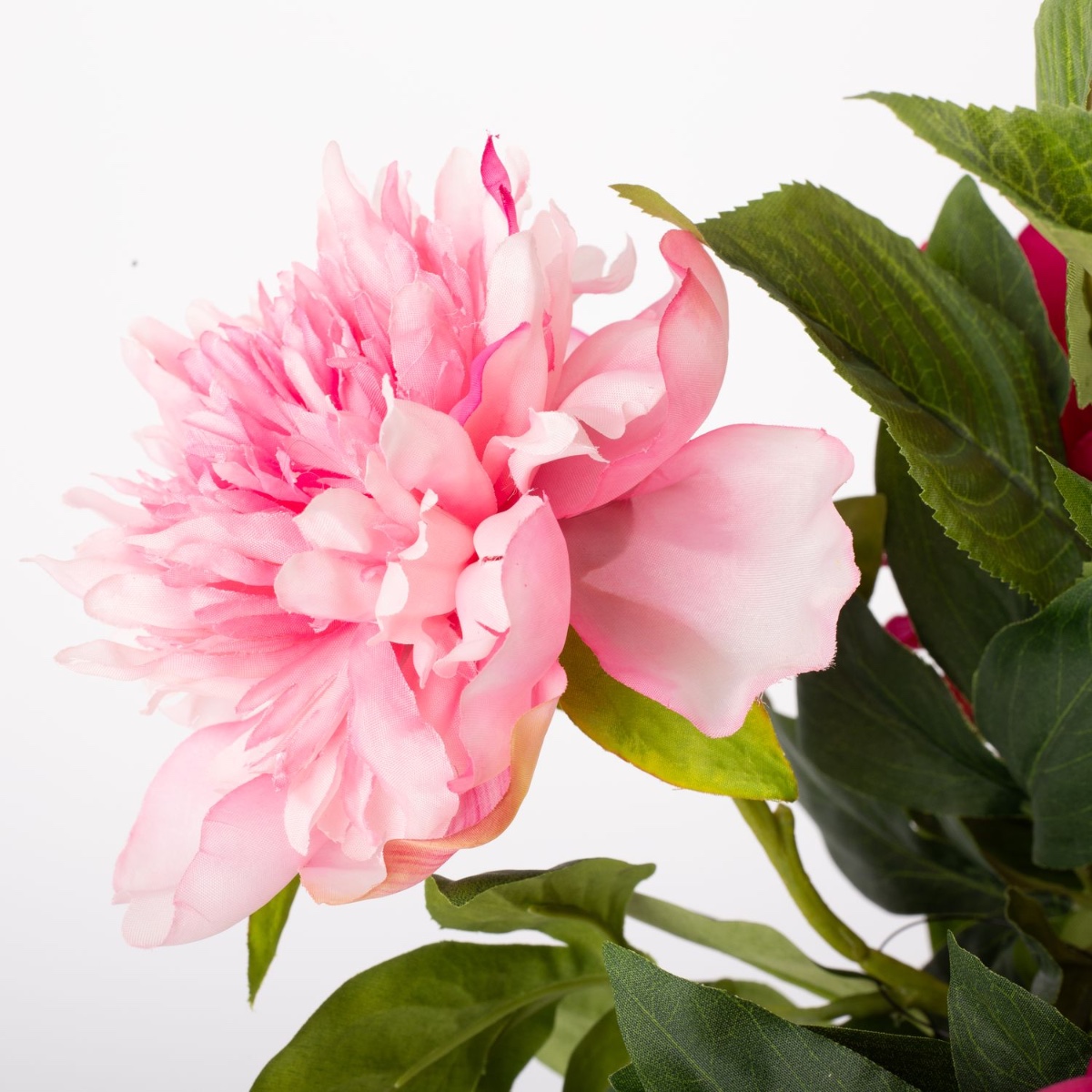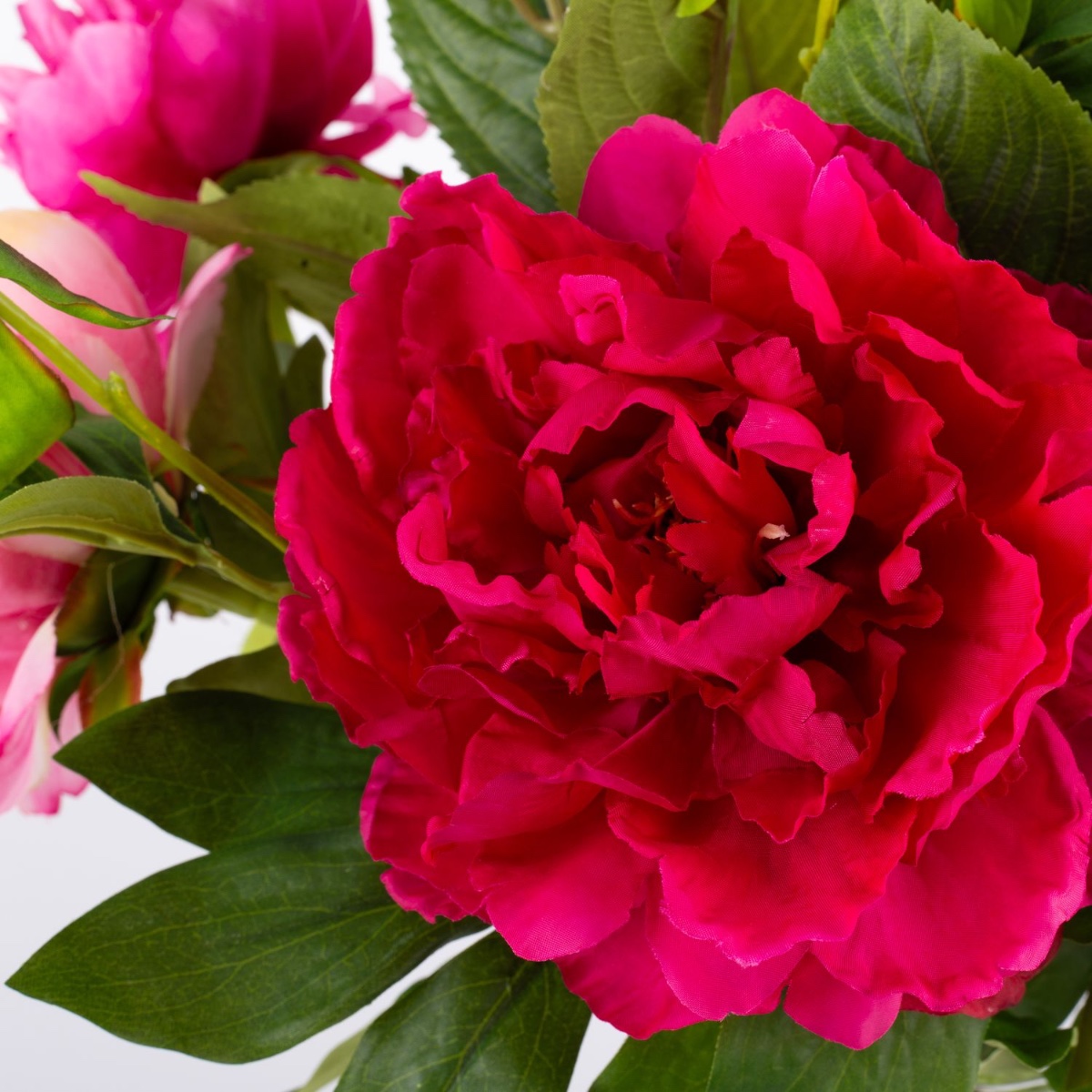 Del fucsia al rosa pálido. Las peonías, con sus flores llenas y exuberantes, muestran casi todos los tonos de rosa, desde el rosa oscuro hasta el rosa claro. Esta flor tan veraniega encaja perfectamente en la estación y aporta un toque de color fresco a la habitación. Este ramo de peonías parece tan real que parece recién recogido del jardín. Hay que tocarlas para darse cuenta de que son flores artificiales de alta calidad hechas de tela.