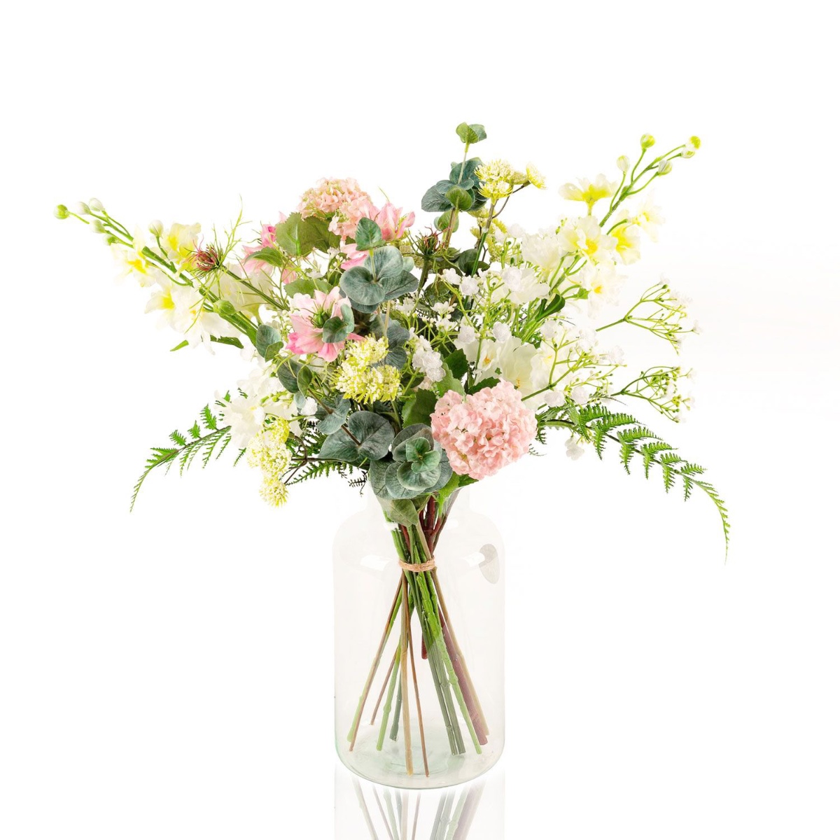 El delicado ramo de flores artificiales KEONA con flores veraniegas rosas y blancas, es un gran regalo y muestra de afecto a un ser querido. El ramo textil es perfecto para numerosas ocasiones, o para regalarse a sí mismo y darse un capricho floral.