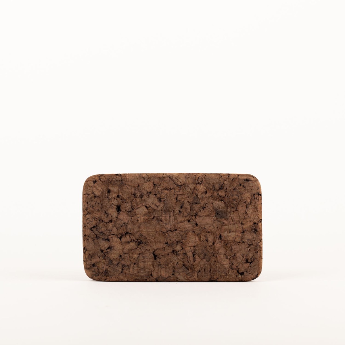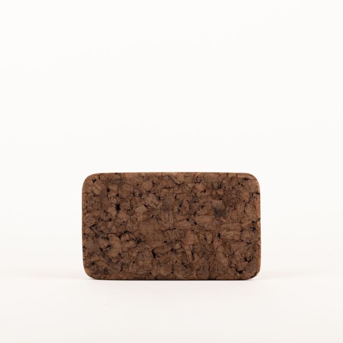- De color oscuro elaborado a partir de corcho prensado. Para formar el corcho prensado se añade un aglutinante a los gránulos de corcho clasificados. El aglutinante, un adhesivo de calidad alimentaria, actúa como un agente natural, asegurando que las partículas de corcho se adhieran entre sí manteniendo sus propiedades únicas.