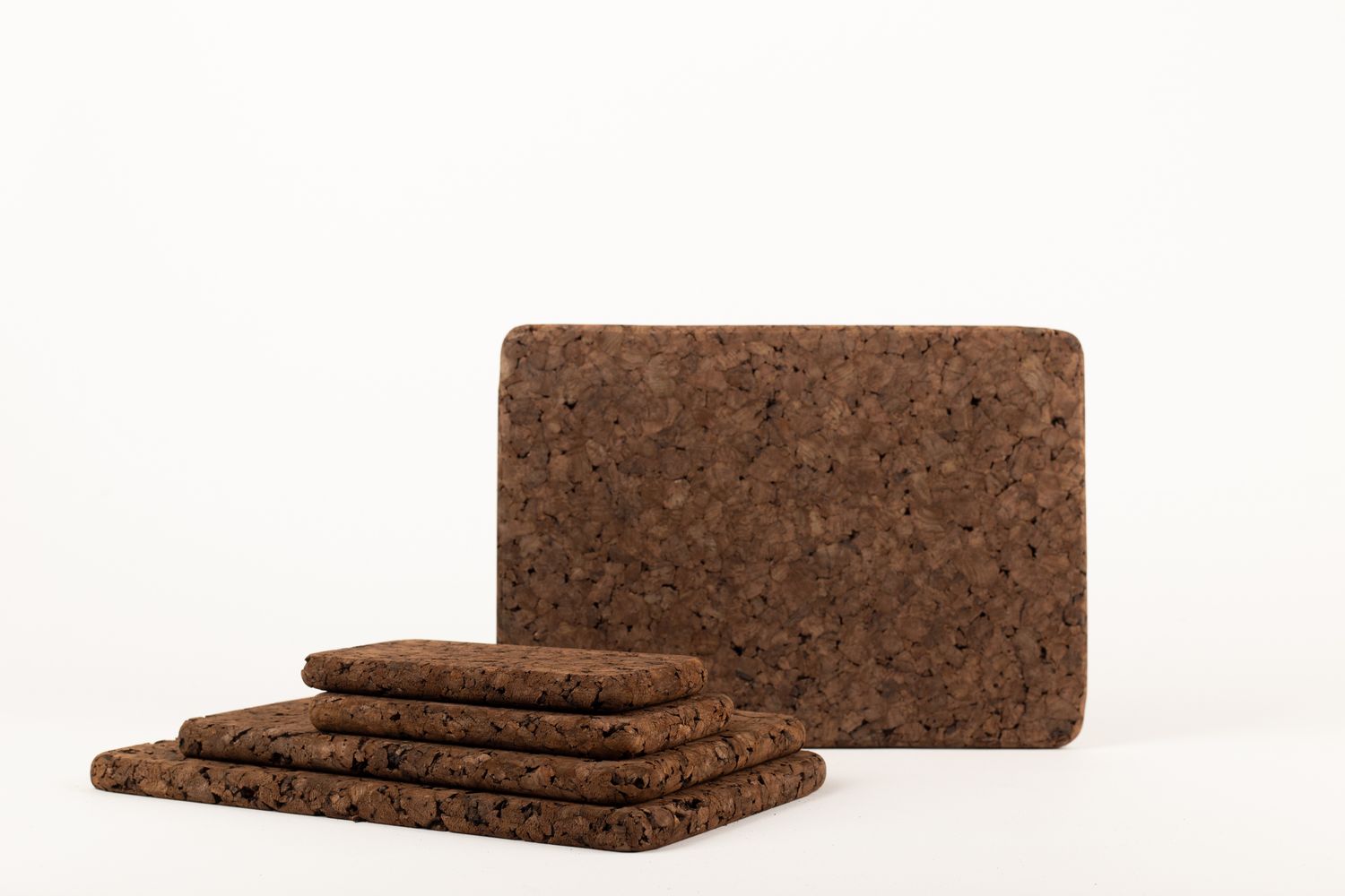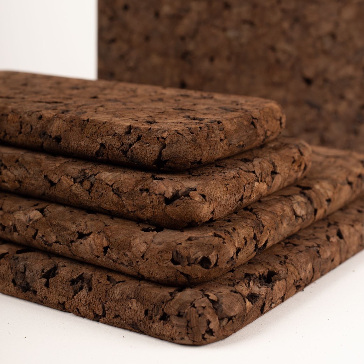 - De color oscuro elaborado a partir de corcho prensado. Para formar el corcho prensado se añade un aglutinante a los gránulos de corcho clasificados. El aglutinante, un adhesivo de calidad alimentaria, actúa como un agente natural, asegurando que las partículas de corcho se adhieran entre sí manteniendo sus propiedades únicas.
