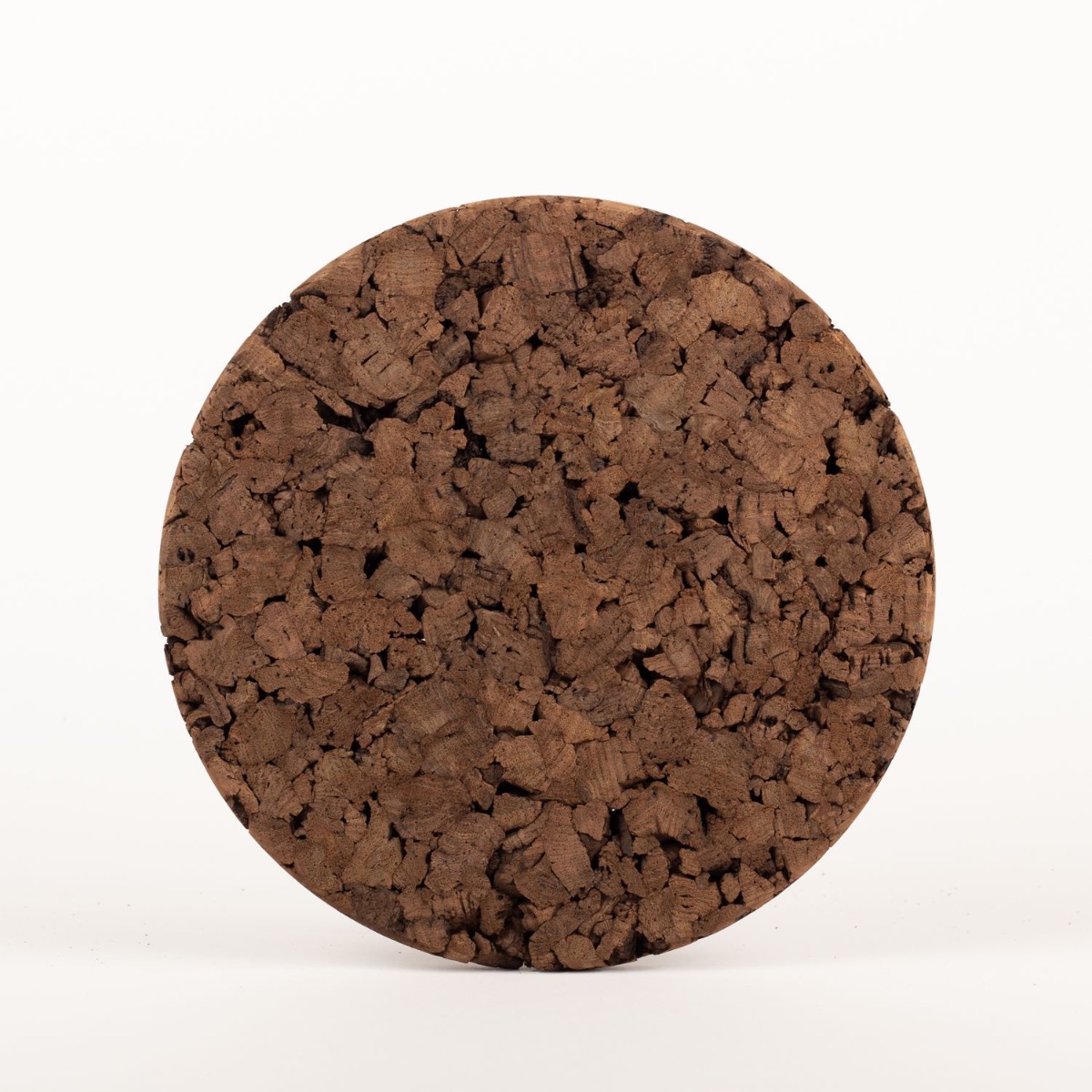 - De color oscuro elaborado a partir de corcho prensado. Para formar el corcho prensado se añade un aglutinante a los gránulos de corcho clasificados. El aglutinante, un adhesivo de calidad alimentaria, actúa como un agente natural, asegurando que las partículas de corcho se adhieran entre sí manteniendo sus propiedades únicas.
