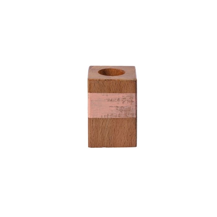 Soporte para velas rectangular de madera KARLINA para velas de palo, natural-salmón, 4x4x6cm