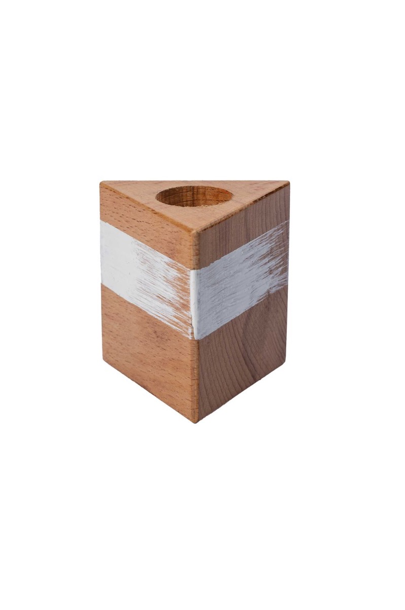 Soporte para velas triangular de madera KARLINA para velas de palo, blanco-natural, 6x6x6cm