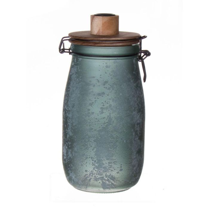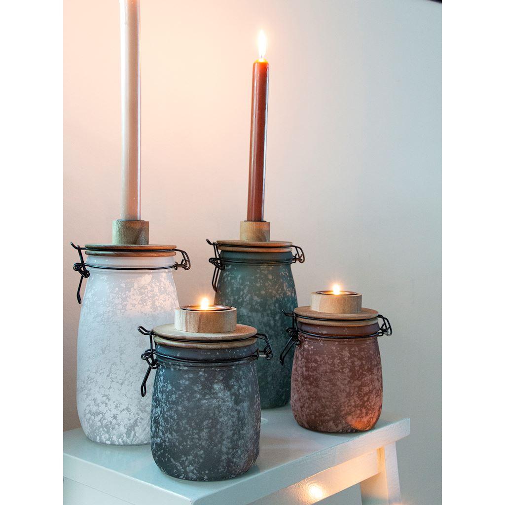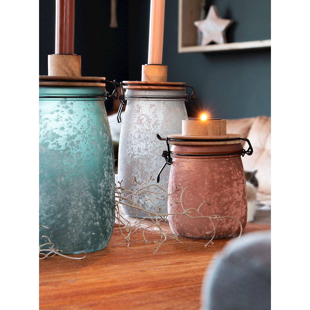 Tarro con cierre hermético ANNEDORE con soporte para velas de palo, aspecto escarchado, verde petróleo, 24,5cm, Ø11,5cm