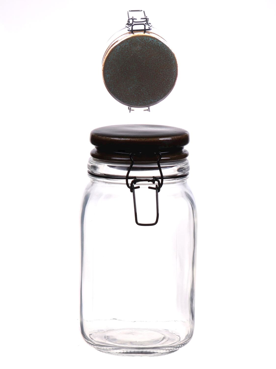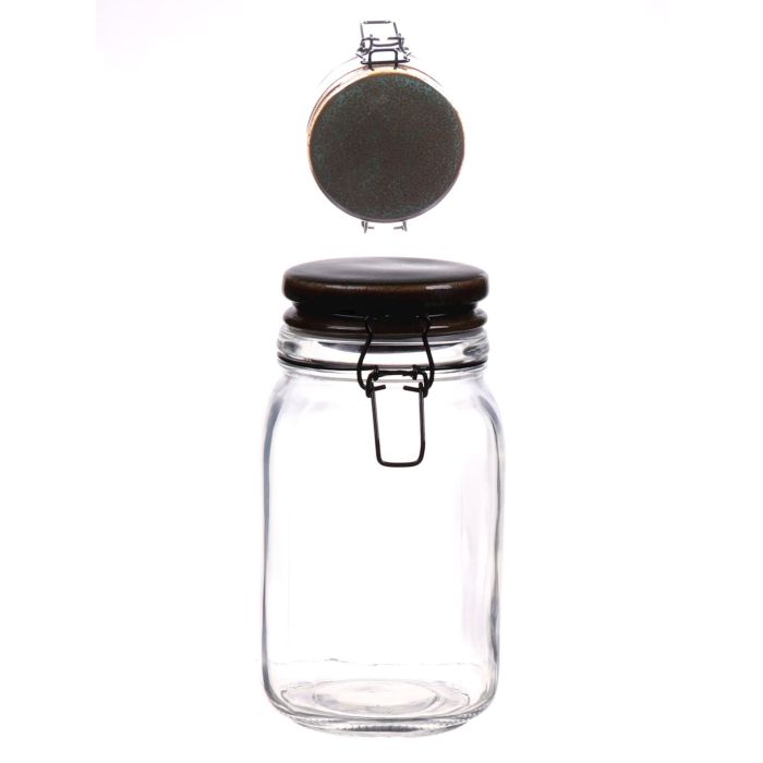 Tarro con cierre hermético de cristal SERINA, tapa verde, transparente, 21,5cm, Ø11cm