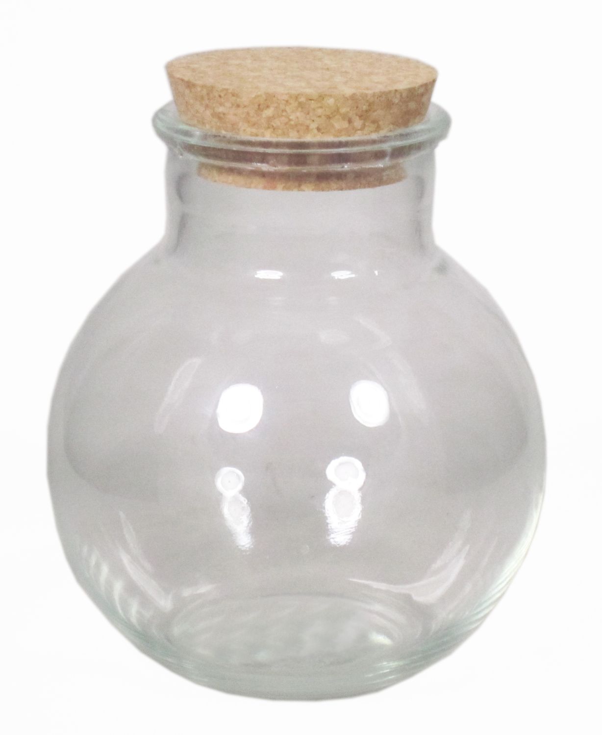 El tarro para caramelos WINDA posee una forma esférica y una tapa de corcho para una mejor conservación de los alimentos.