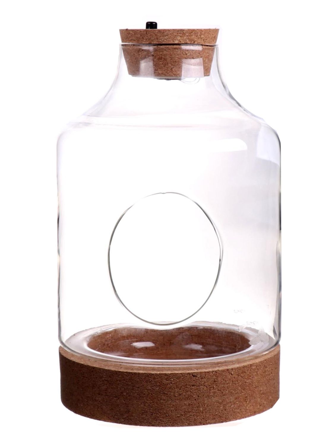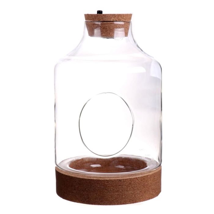 Terrario de cristal KUKKA, tapa de corcho, fondo de corcho, LEDs, transparente, 28cm, Ø17cm