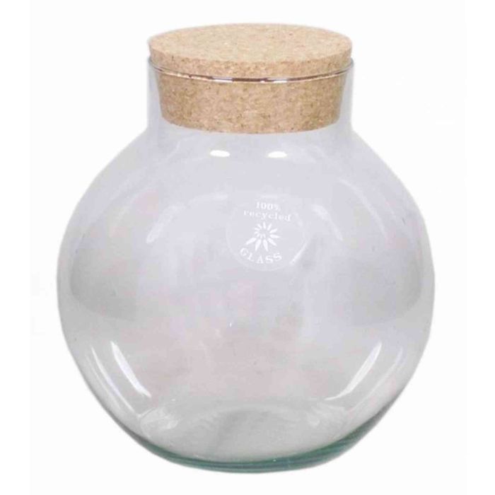 Terrario de vidrio GASPAR, con tapa de corcho, bola/redondo, transparente, 27cm, Ø14cm/Ø25cm