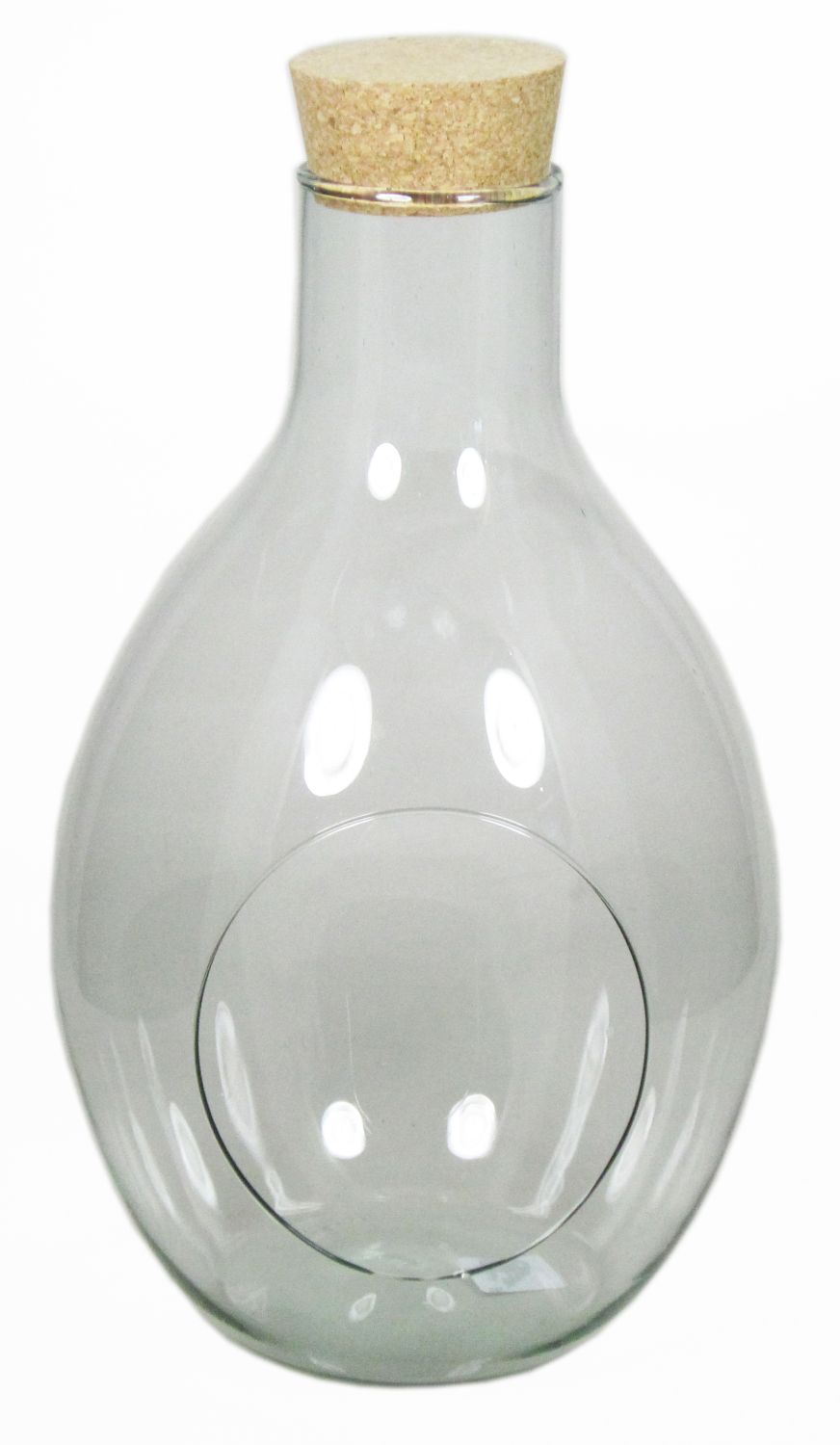 Terrario de vidrio VINELLA, tapa de corcho, abertura lateral, bola/redondo, transparente, 36,5cm, Ø8cm/Ø24,5cm