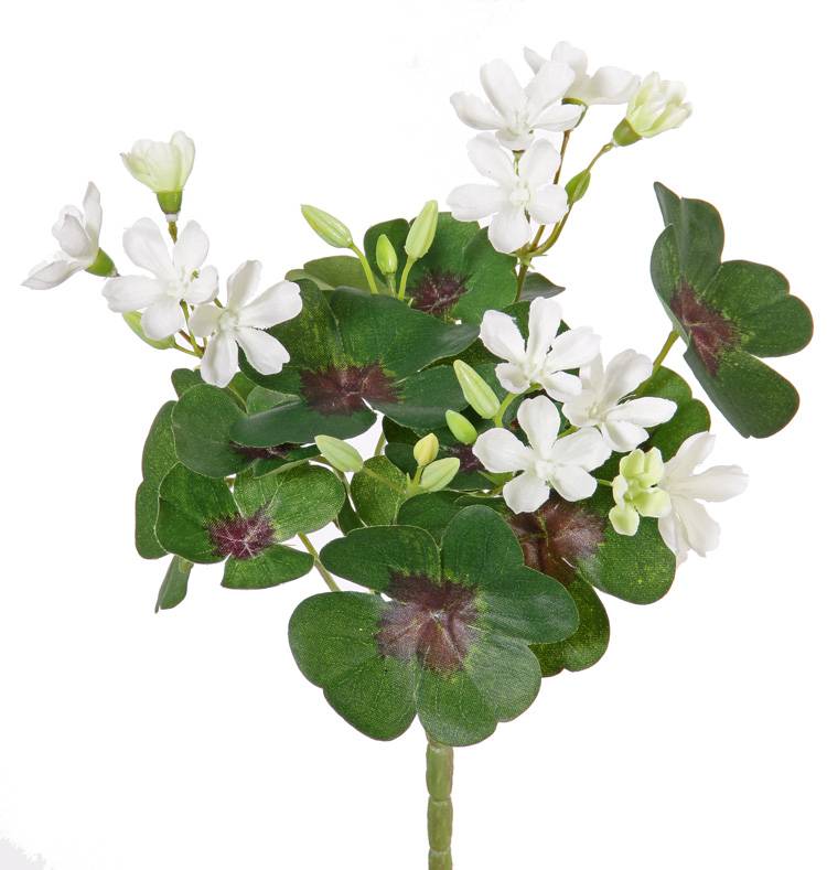 Trébol artificial KARTIKA, floración, con palo, blanco, 20cm