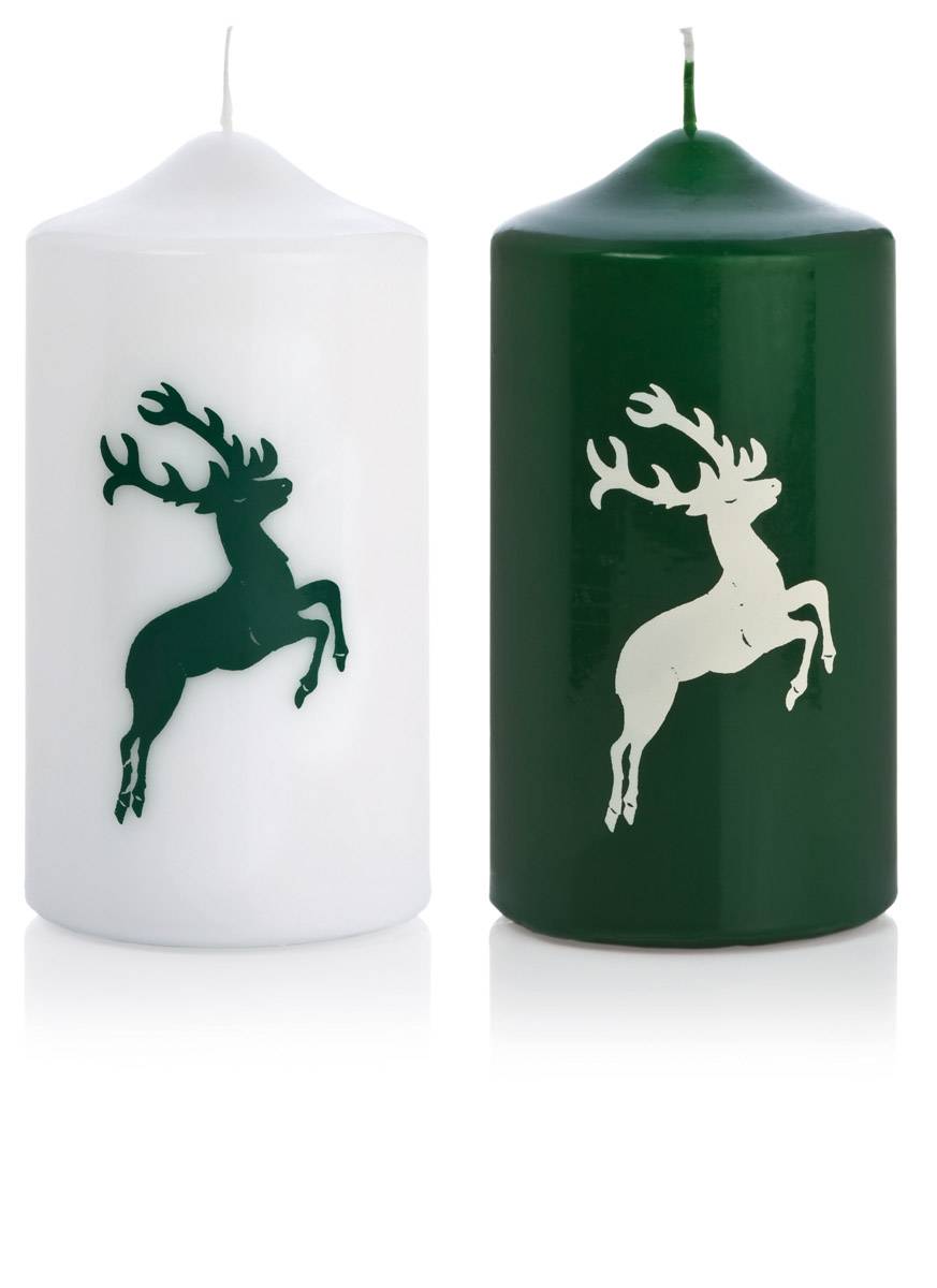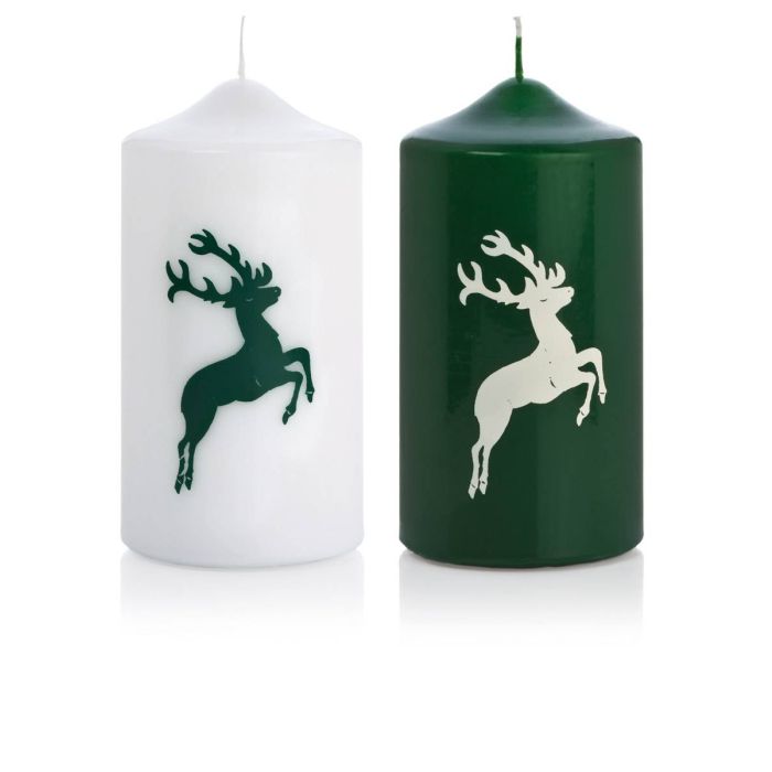 Vela con motivos / Vela de Navidad DALDI, dibujo de reno, juego de 2, verde oscuro, 15cm, Ø8cm, 69h - Hecho en Alemania