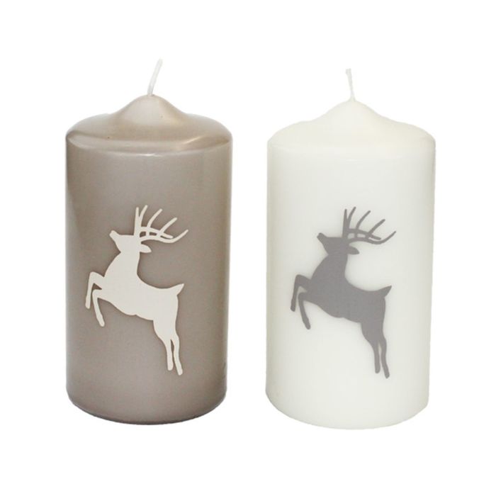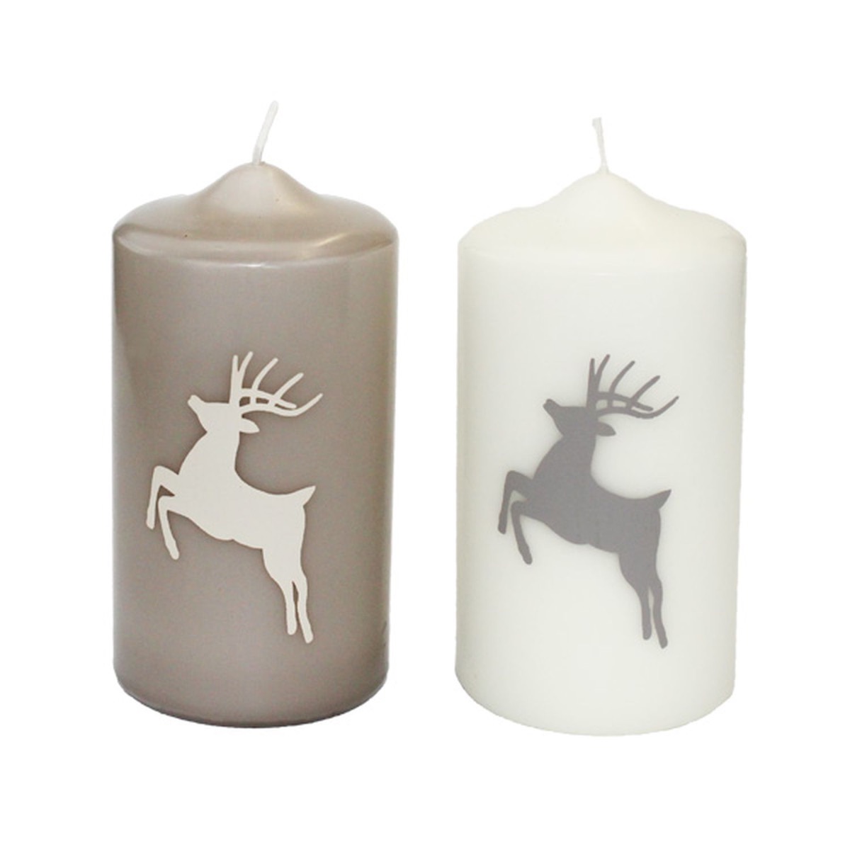 Vela con motivos / Vela de Navidad DALDI, dibujo de reno, set de 2, beige, 15cm, Ø8cm, 69h - Hecho en Alemania
