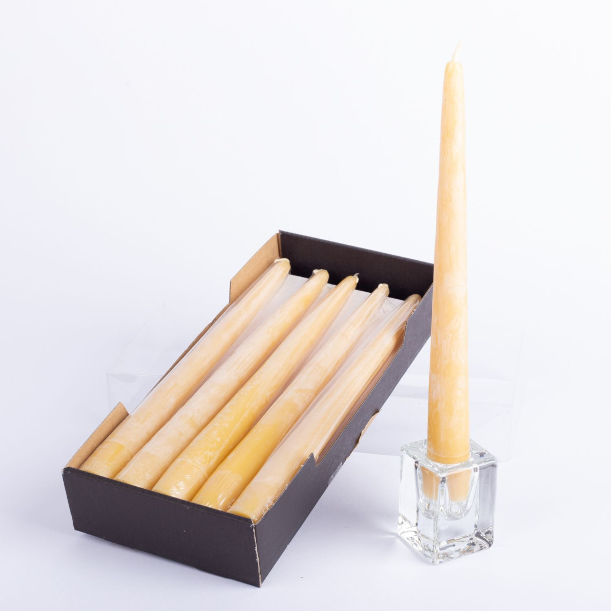 Vela de cera de abejas BABETTE, 6 piezas, amarillo-natural, 25cm, Ø2,3cm, 7h - Made in Germany