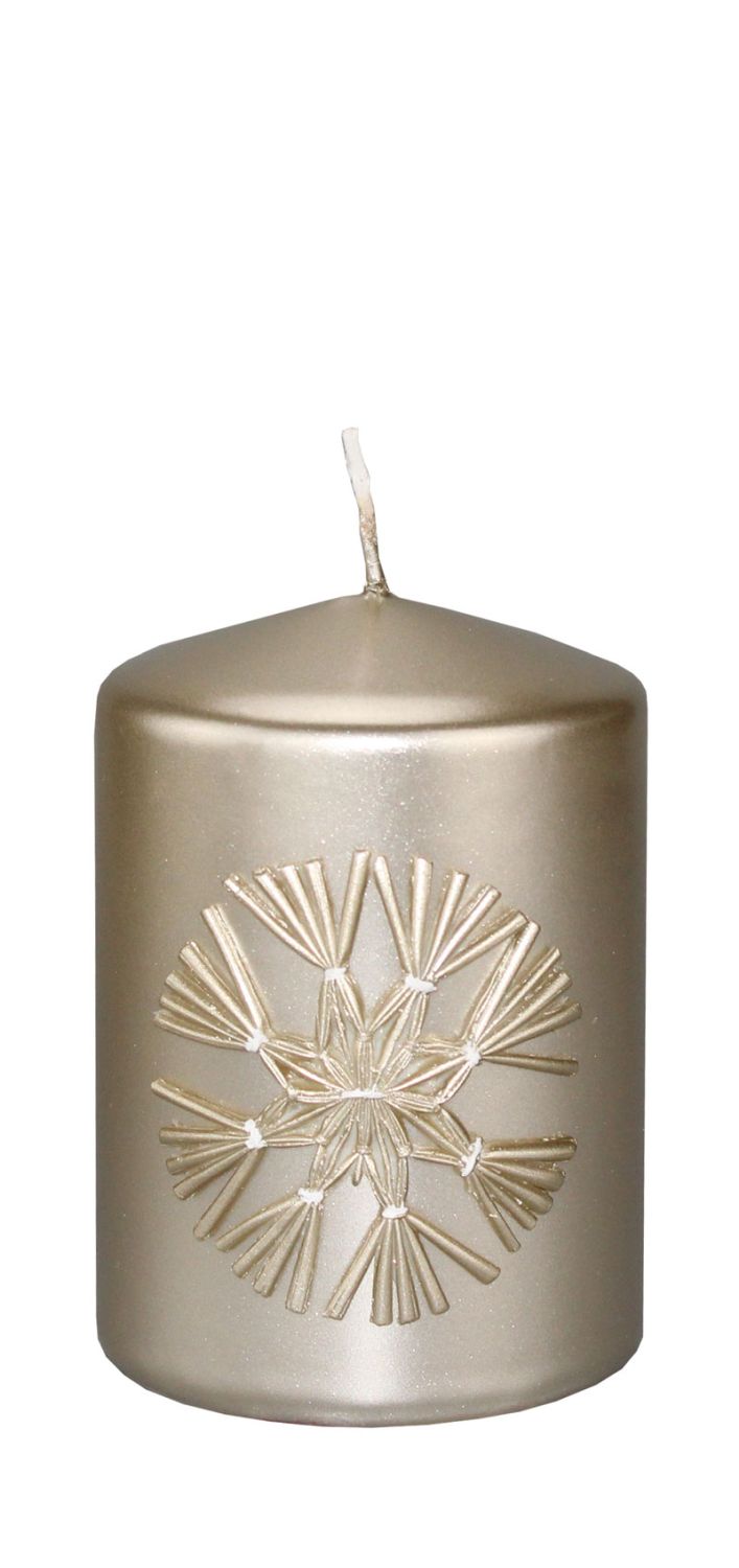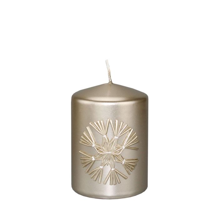 Vela de pilar DINORA con motivo de estrella de paja, perla, 10cm, Ø7cm, 42h - Made in Germany