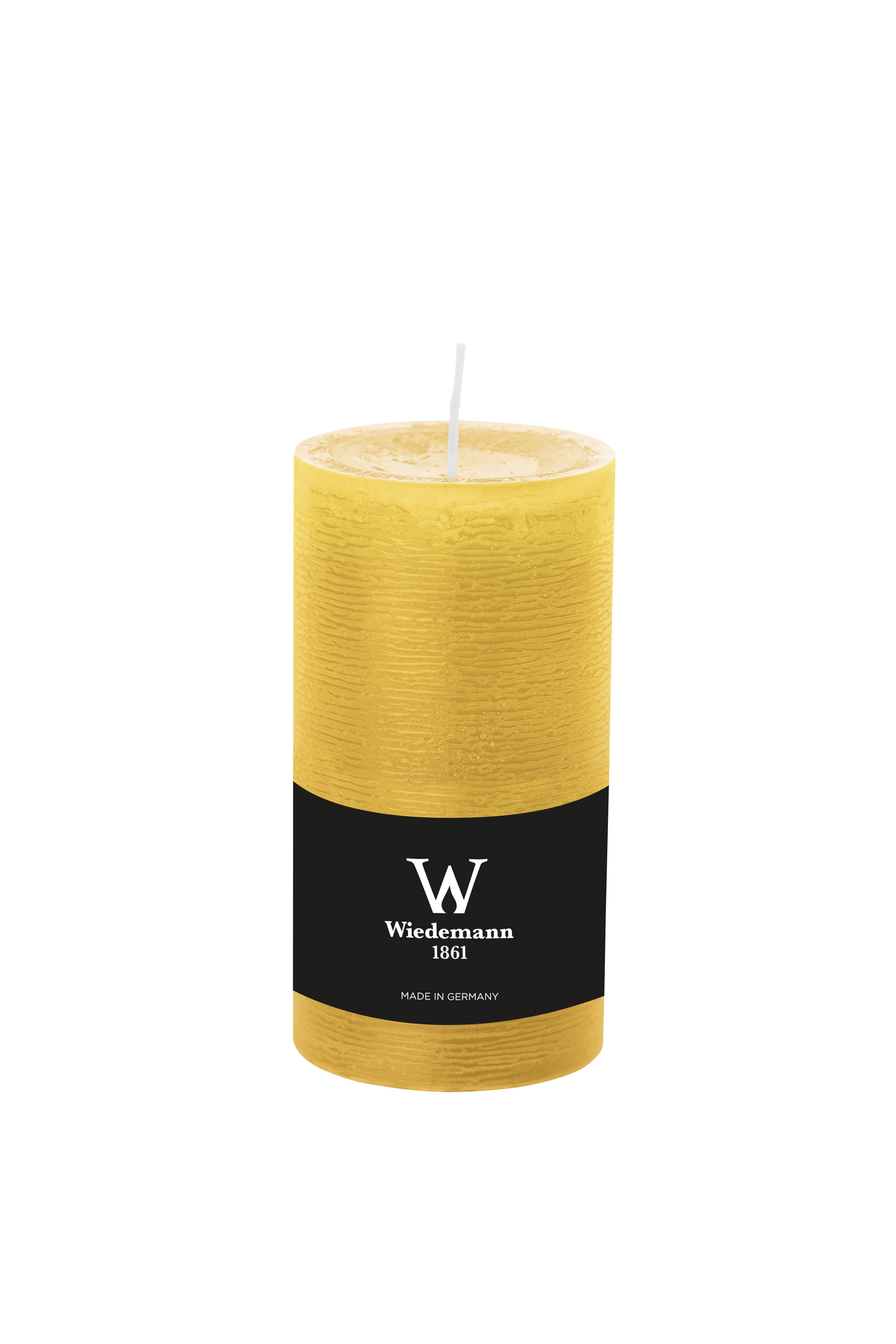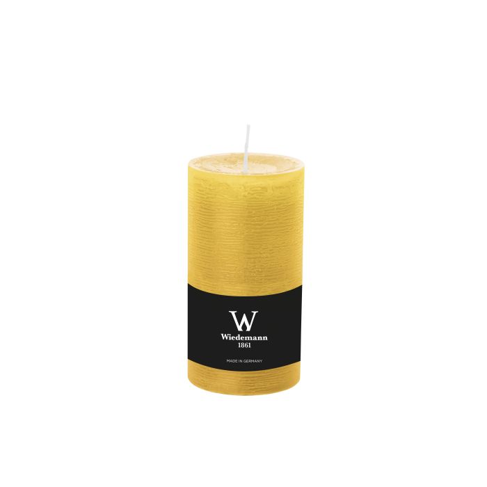 Vela de pilar / Vela de cera AURORA, amarilla, 19cm, Ø10cm, 155h - Hecho en Alemania