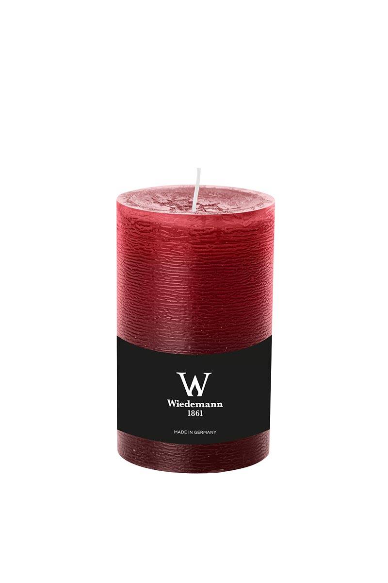 Vela de pilar / Vela de cera AURORA, burdeos, 13cm, Ø7,8cm, 63h - Hecho en Alemania