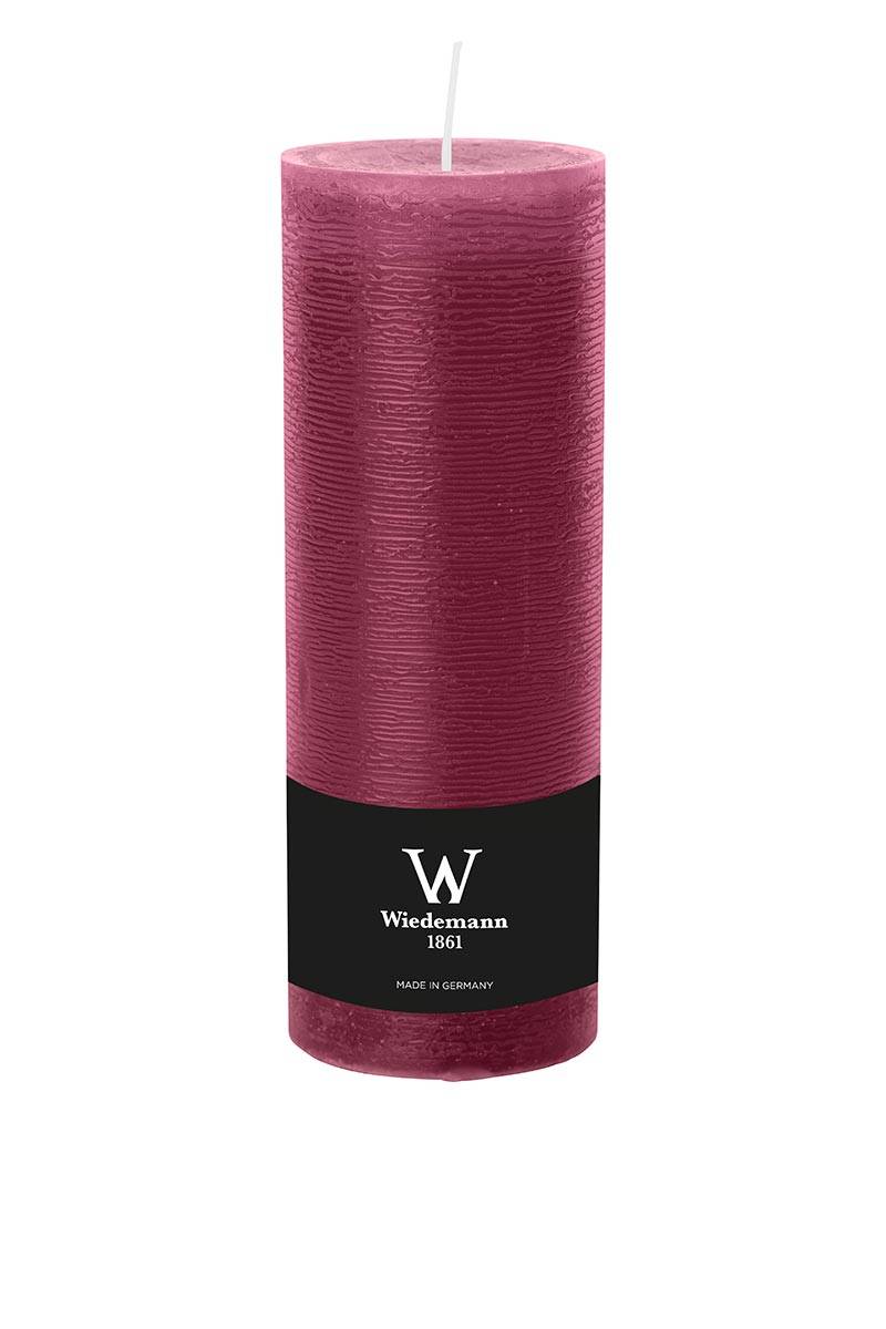 Vela de pilar / Vela de cera AURORA, magenta, 19cm, Ø6,8cm, 85h - Hecho en Alemania