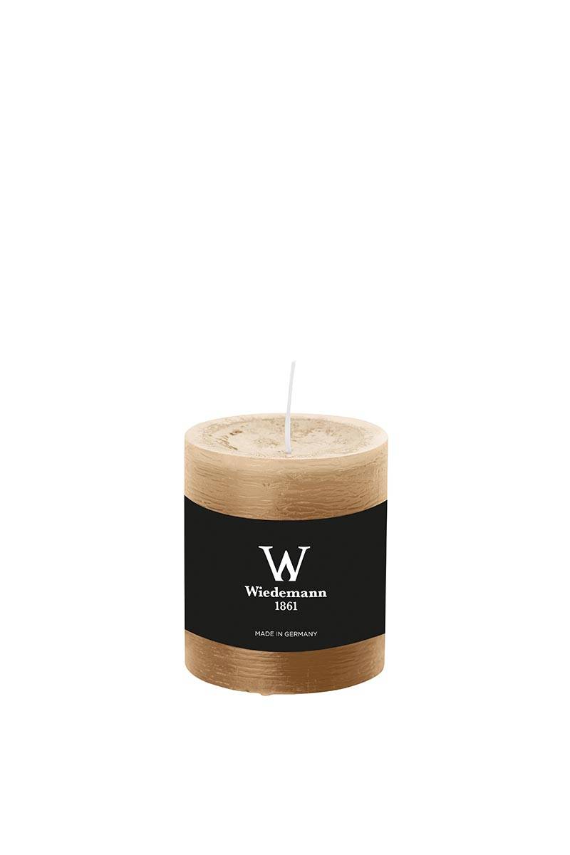 Vela de pilar / Vela de cera AURORA, marrón claro, 8cm, Ø6,8cm, 34h - Hecho en Alemania