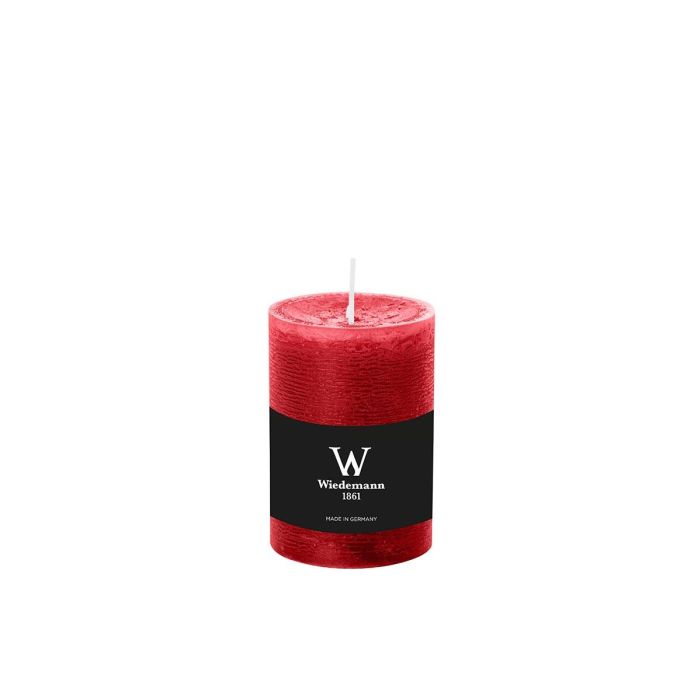 Vela de pilar / Vela de cera AURORA, rojo rubí, 10cm, Ø6,8cm, 42h - Hecho en Alemania