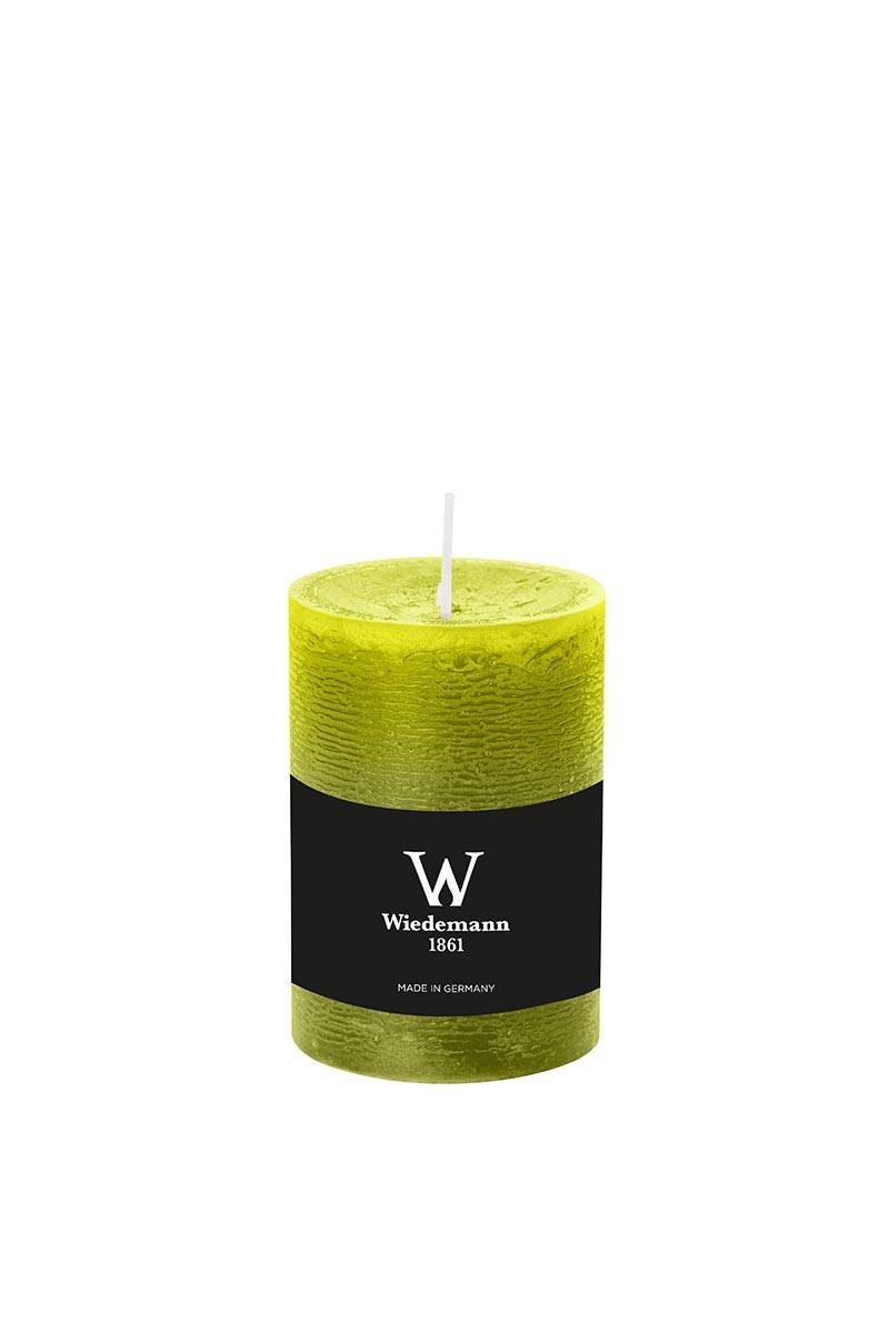 Vela de pilar / Vela de cera AURORA, verde manzana, 10cm, Ø6,8cm, 42h - Hecho en Alemania