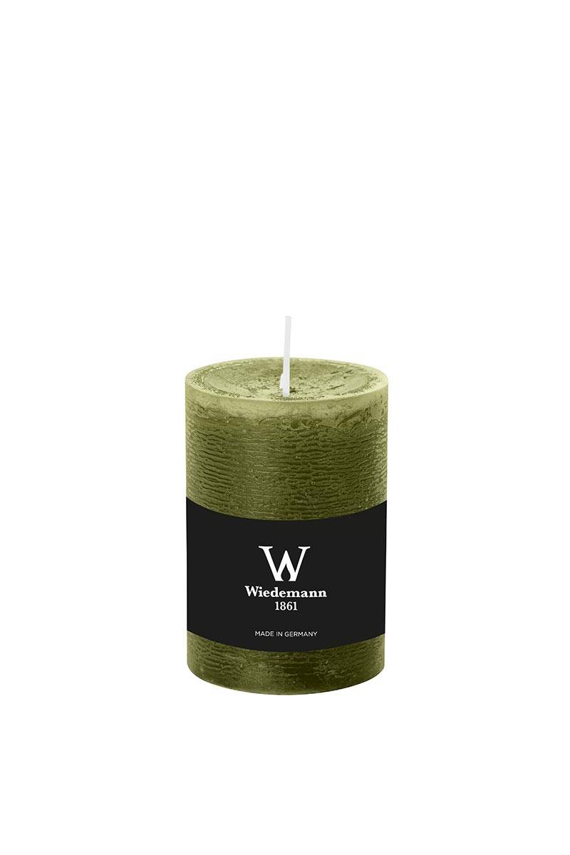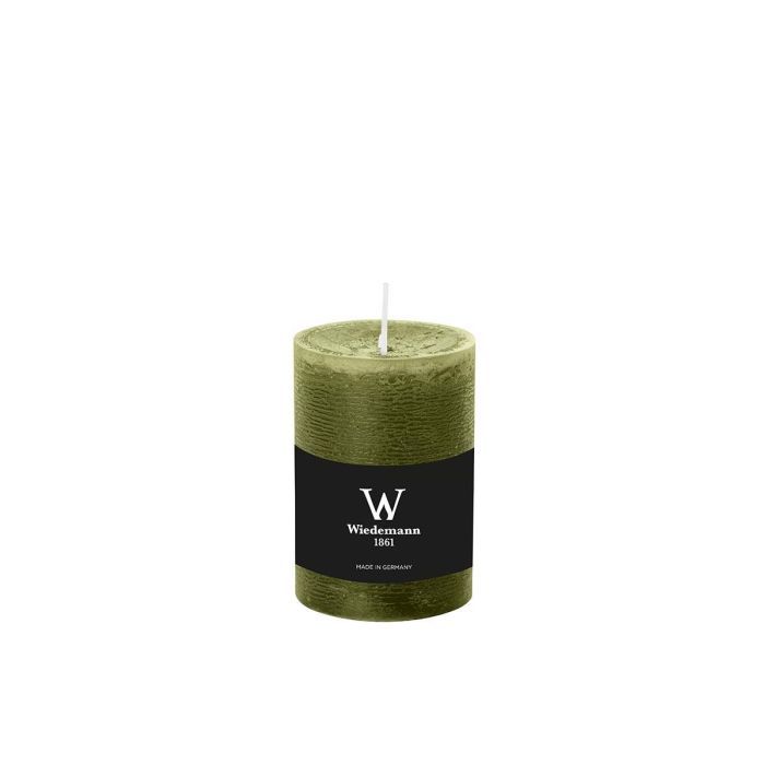 Vela de pilar / Vela de cera AURORA, verde oliva, 10cm, Ø6,8cm, 42h - Hecho en Alemania