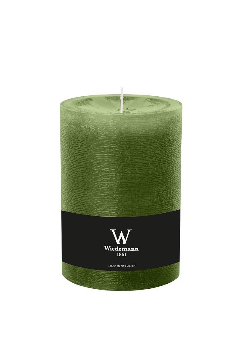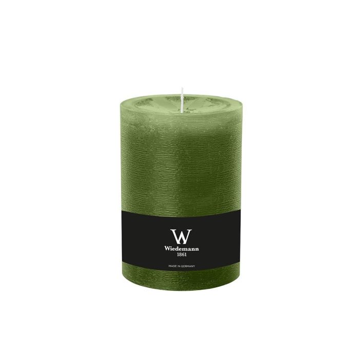 Vela de pilar / Vela de cera AURORA, verde oliva, 14cm, Ø9,8cm, 100h - Hecho en Alemania