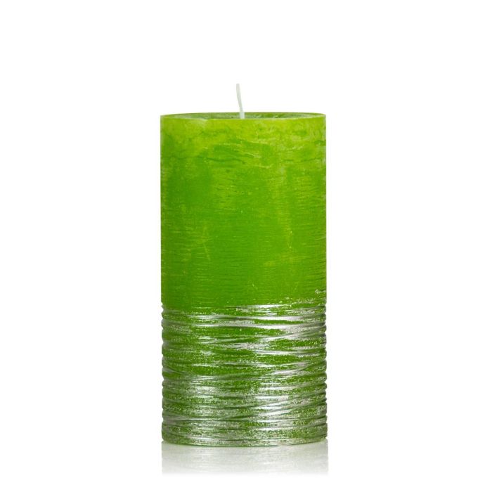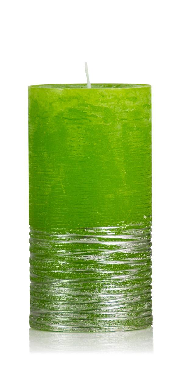 Vela de pilar / vela votiva SILVANA, con borde acanalado, verde manzana, 13cm, Ø6,8cm, 54h - Hecho en Alemania