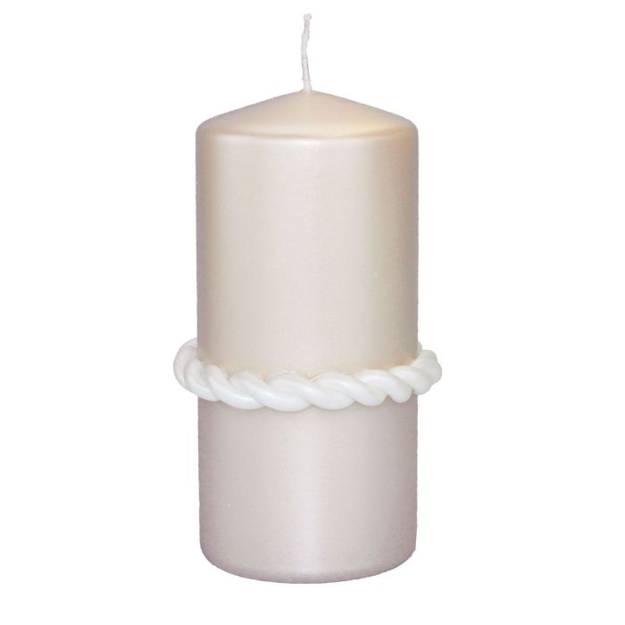 Vela pilar JULIETTA con anillo de seda, crema, 15cm, Ø7cm, 63h