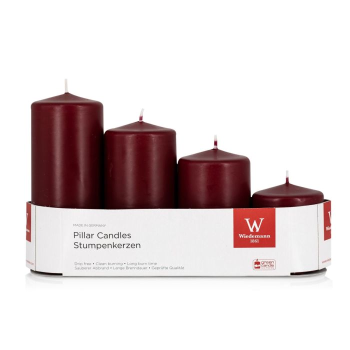 Velas de Adviento JENARO, 4 piezas, graduadas, burdeos, 6cm, 8cm, 10cm, 12cm, Ø5cm - Made in Germany